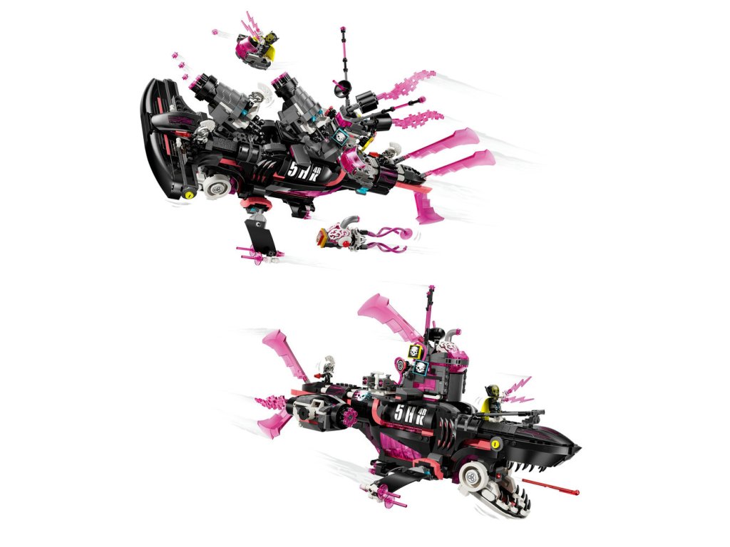 Mladí snívajúci si postavia model žraloka, ktorého môžu neskôr premeniť na žraločkoponorku alebo na bojovú loď so žralokmi kladivohlavými. Medzi doplnky stavebnice patria odnímateľné mini lietadlá, vystreľovače projektilov, rakety, ktoré strieľajú zo žraločích úst, otvárací kokpit a väzenie vo vnútri žraloka. Model obsahuje aj modulárne vystreľovače, ktoré sú kompatibilné s inými stavebnicami zo série LEGO DREAMZzz z roku 2025 (predávané samostatne). Minifigúrky Matea, Logana, Astrid, Rozbíjača snov a snívajúcich a figúrky Z-Bloba a 3 Kybertvorov vdýchnu stavebnici život a inšpirujú deti k tvorivým hrám.