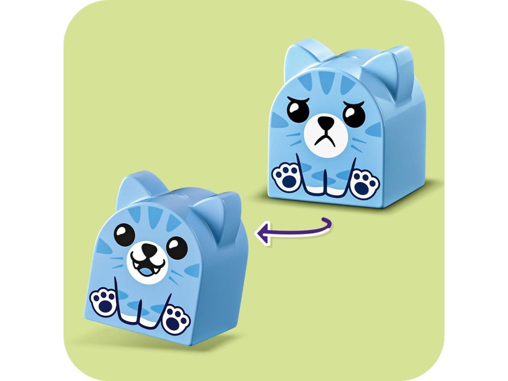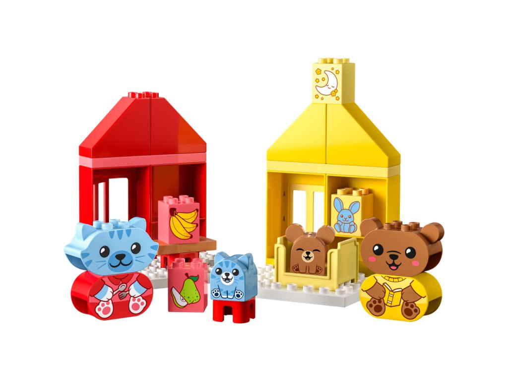Čas na spanie aj jedenie môže byť pre malé deti plný emócií, ale táto vzdelávacia hračka pre najmenších umožňuje batoľatám vyjadriť svoje pocity popri týchto činnostiach. Stavebnica sa dodáva s 2 roztomilými zvieracími rodinkami a obe obsahujú dospelé zvieratko a jeho mláďa. Figúrky mačiatka a medvedíka sa dodávajú s kockami s dvoma rôznymi výrazmi tváre – jedna strana veselá, druhá smutná – čo uľahčuje batoľatám, ktoré ešte nevedia rozprávať, prejaviť svoje pocity.
