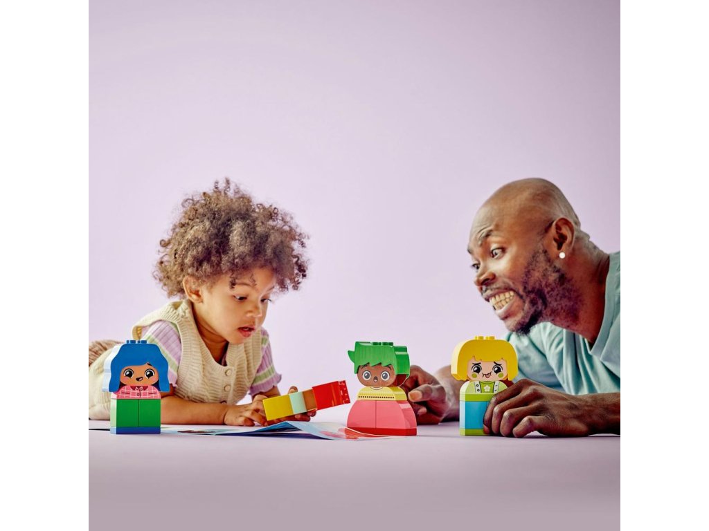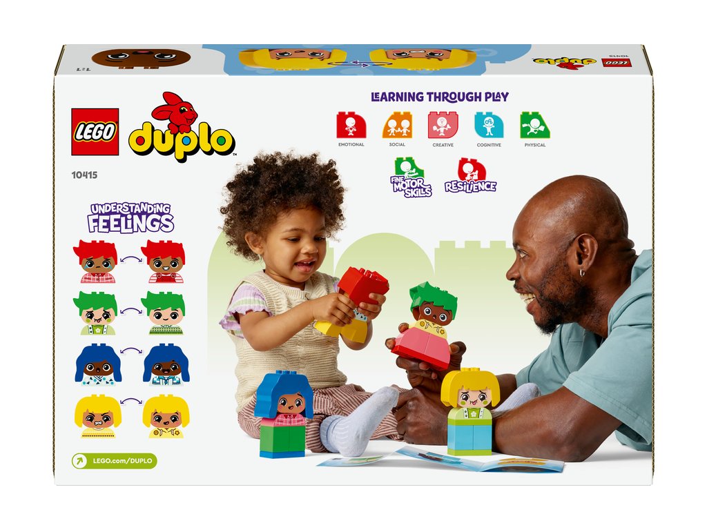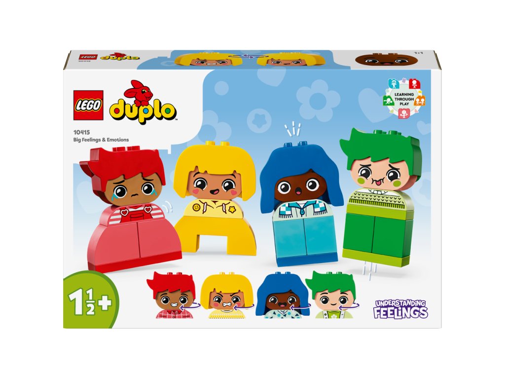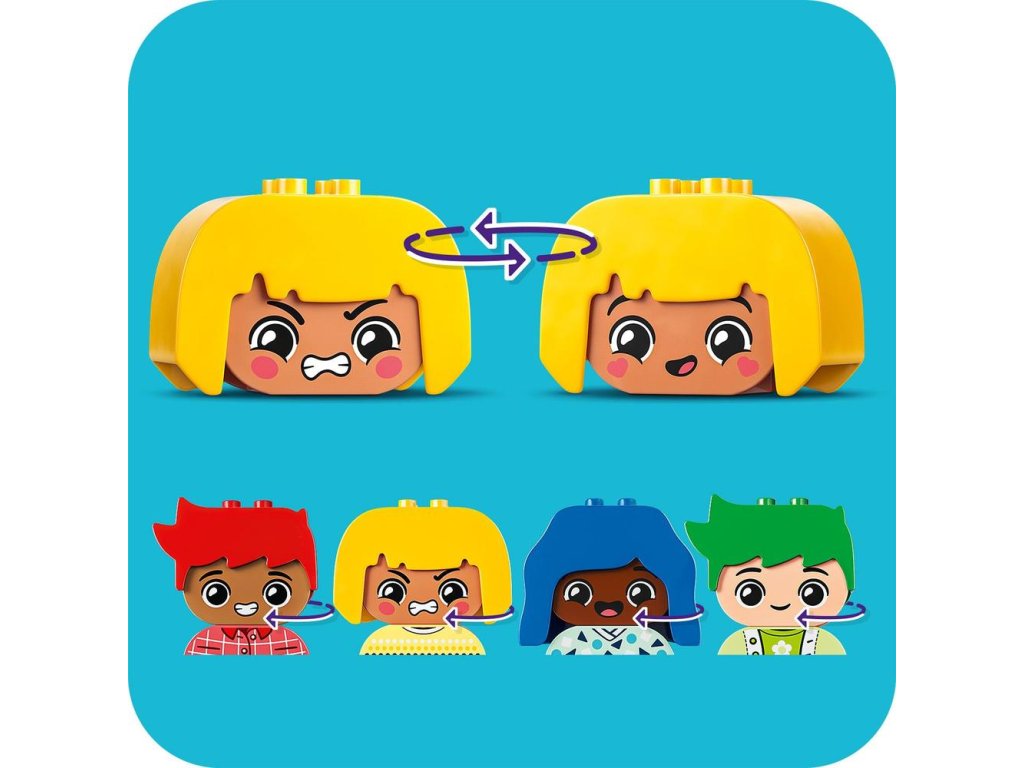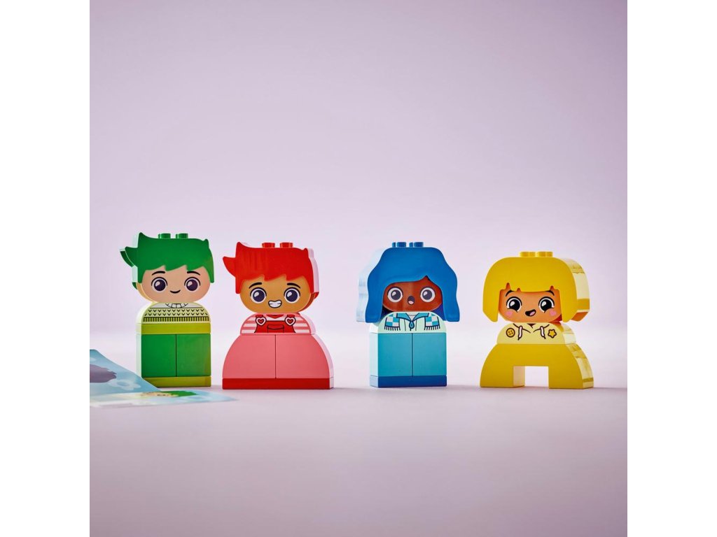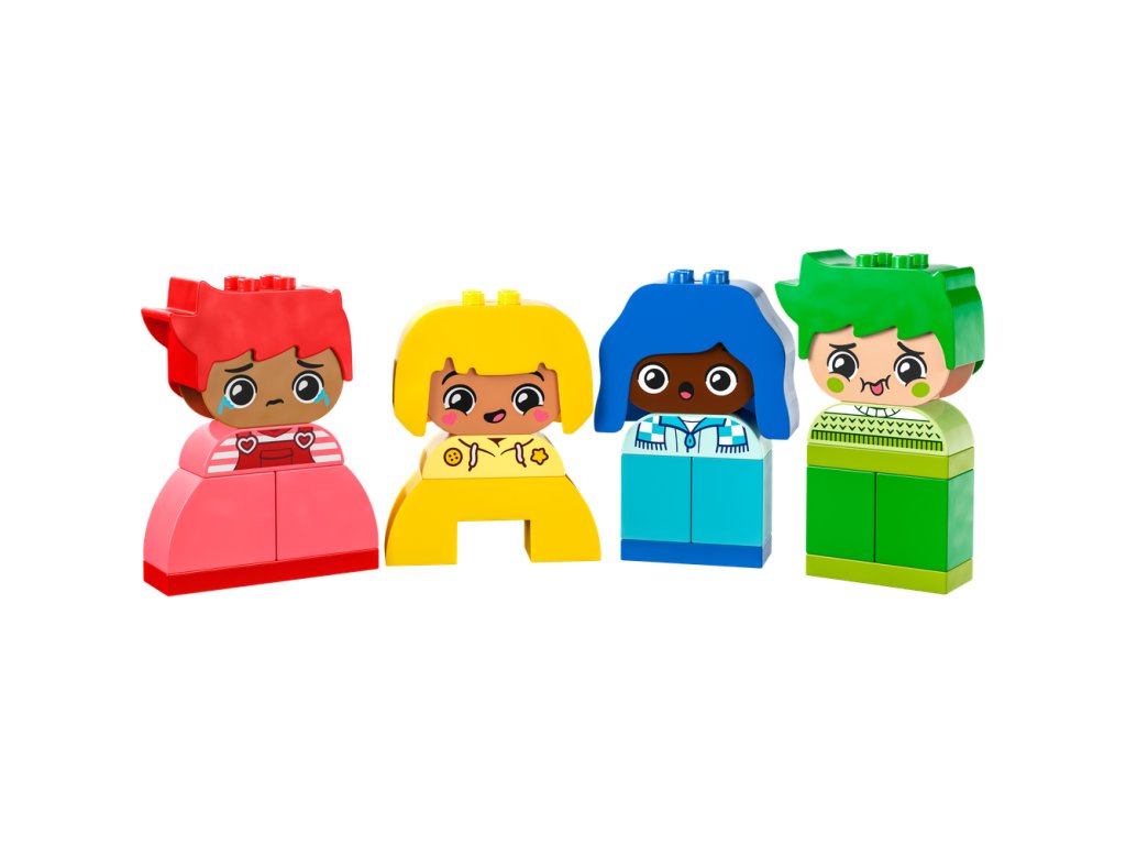 Pomôžte batoľatám preskúmať svoje emócie a reakcie s kognitívnou vzdelávacou hračkou LEGO® DUPLO® Moje prvé pocity a emócie (10415). Model sa dodáva so 4 rozmanitými postavičkami, z ktorých každá má 2 rôzne výrazy tváre, takže najmenšie deti môžu meniť tváre hračiek a vyjadriť tým svoje pocity.