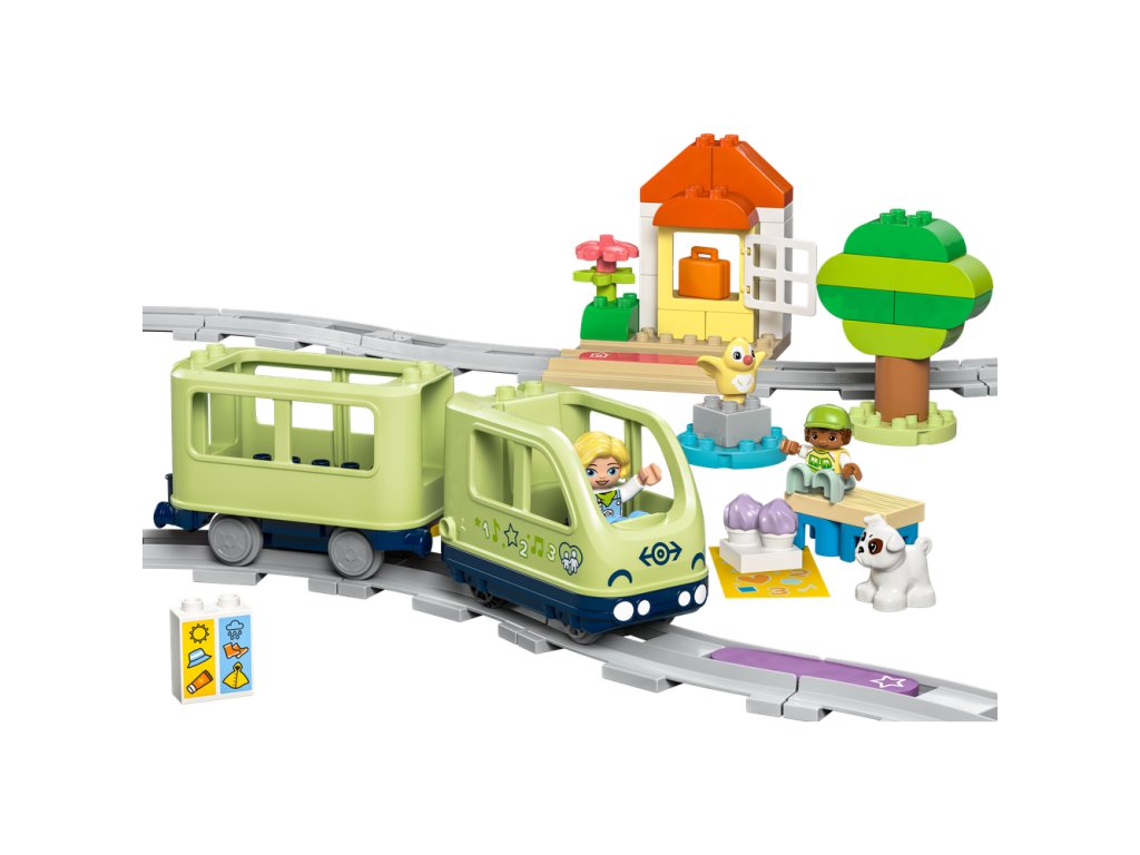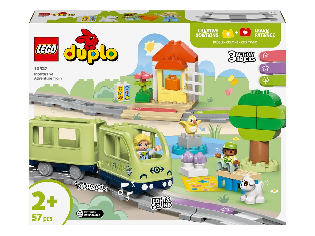 S hračkou Interaktívny dobrodružný vláčik (10427) sa batoľatá môžu ujať riadenia. Tento hračkársky vláčika pre deti od 2 rokov im umožňuje zvoliť si cieľ rodinného zájazdu a potom sa vydať na cestu plnú svetiel, zvukov a učenia.
