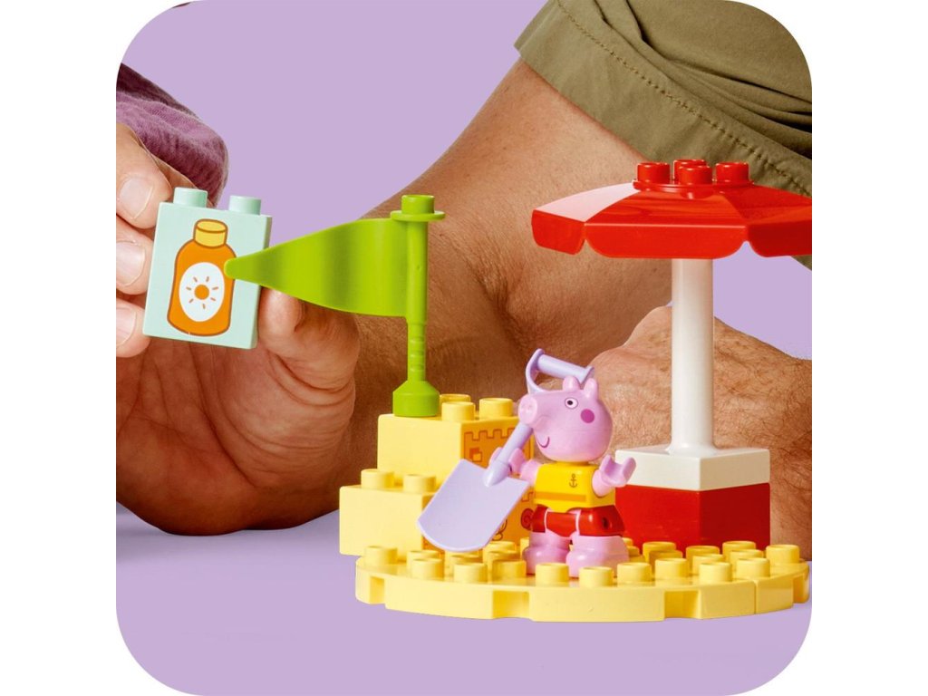 Táto hračka na stavanie a prestavovanie je plná kvalitných doplnkov, ktoré batoľatám inšpiráciu na vymýšľanie príbehov. stačí, než sa pustí do hľadania mušlí pomôže Peppe natrieť sa opaľovacím krémom. Potom si precvičia svoje zručnosti počas stavania hradu z piesku. Ak bude slnko príliš páliť, Peppa sa môže schovať pod slnečník alebo si ísť zaplávať a deti si precvičia koordináciu rúk a očí a jemnú motoriku, keď jej pomôžete nasadiť plutvy. A ak by sa aj deti chceli schladiť, môžu. Tento model loďky Prasiatka Peppa skutočne pláva, takže s touto hračkou do vody si deti užijú hodiny zábavy a špliechania.