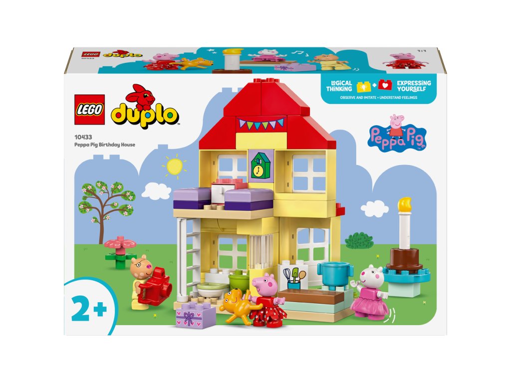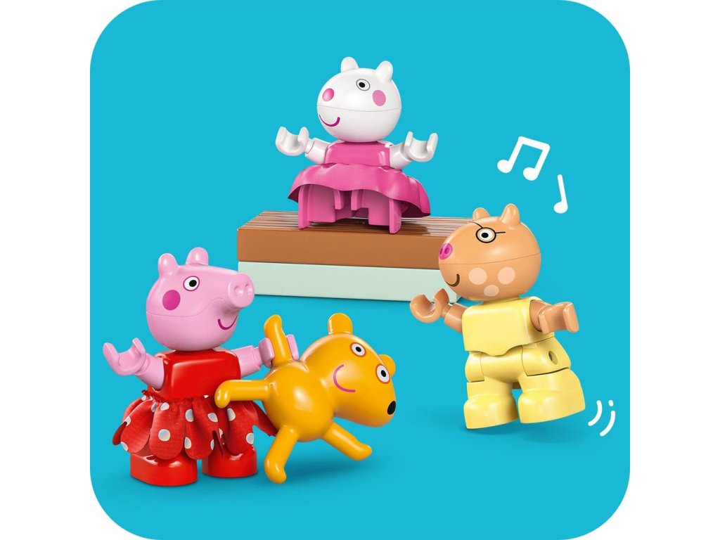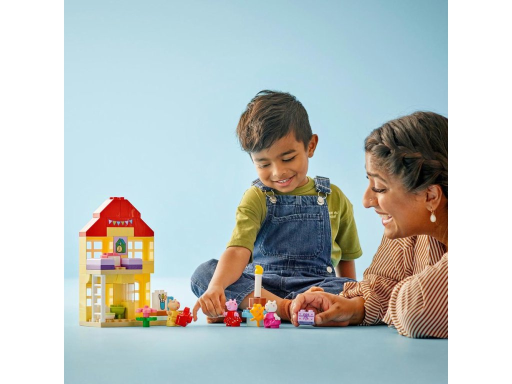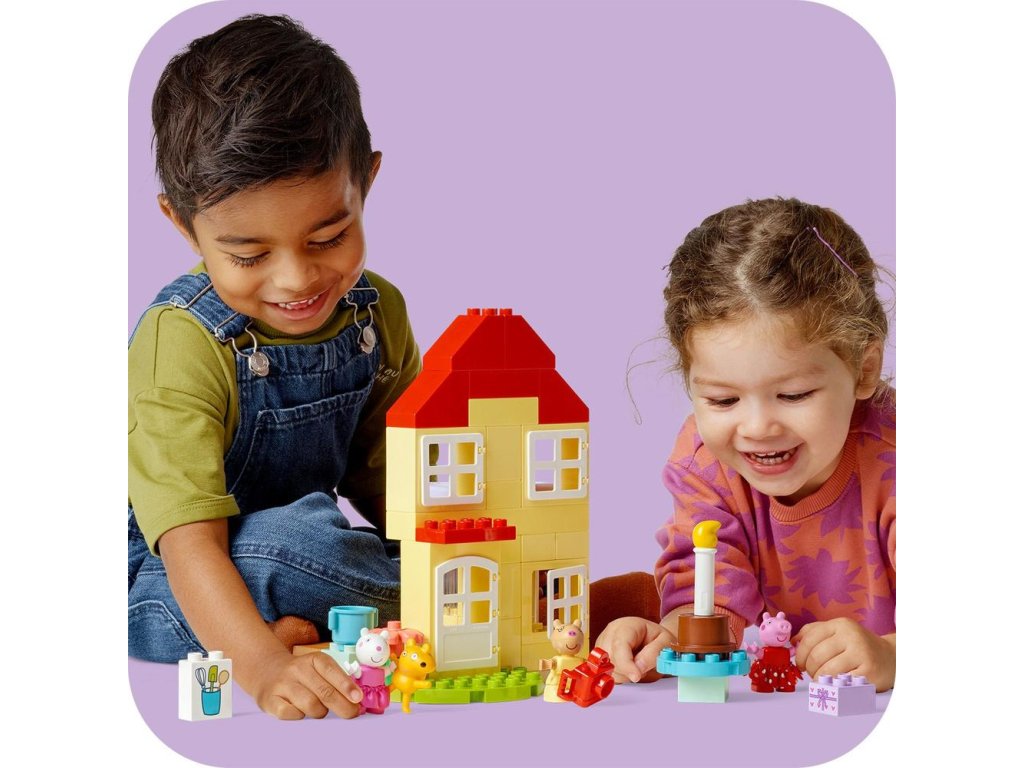 Hračky LEGO® DUPLO® Prasiatko Peppa na stavanie a prestavovanie sú navrhnuté tak, aby podporovali rôzne vzdelávacie zručnosti malých detí. Batoľatá si rozvíjajú logické myslenie pri napodobňovaní skutočného života a inscenovaní rôznych aktivít počas osláv, ako je vítanie kamarátov, darovanie darčekov a krájanie torty. Rozvíjajú si aj sebavyjadrovacie schopnosti tým, že si predstavujú, aké to je byť súčasťou takejto radostnej oslavy.