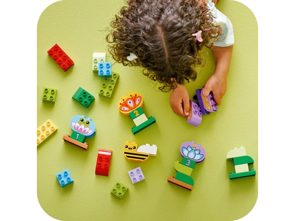 - Stavebnica so záhradou pre deti predškolského veku – Model LEGO® DUPLO® Mesto Kreatívna záhrada a kvety podporuje slobodné stavanie a neobmedzenú tvorivú hru
