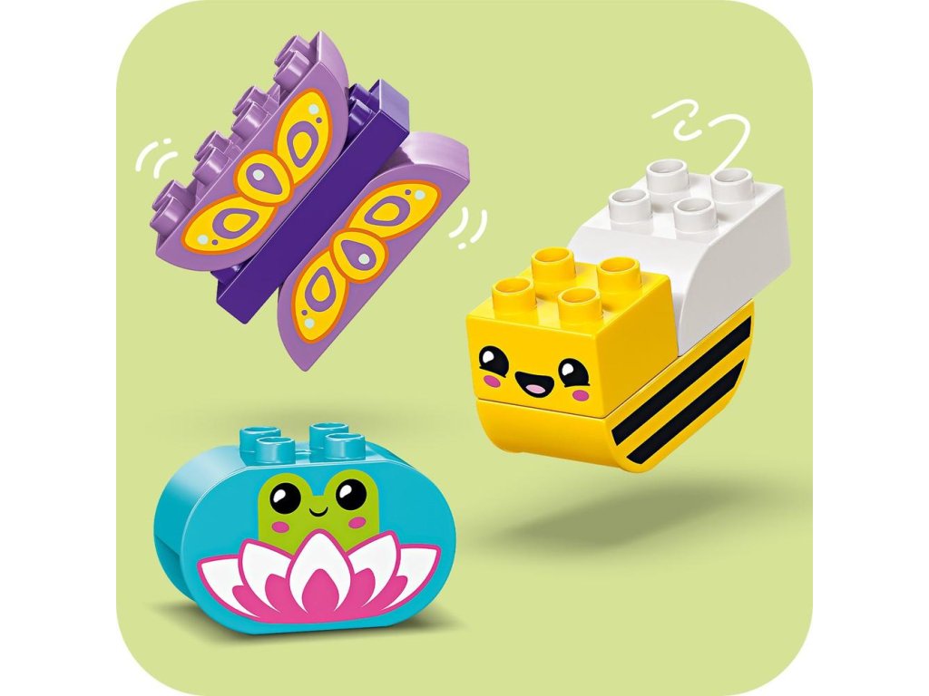 - Obsahuje 3 zvieracie postavy LEGO® DUPLO® – Táto prírodná hračka pre malé deti obsahuje 3 figúrky: žabu, motýľa a včelu