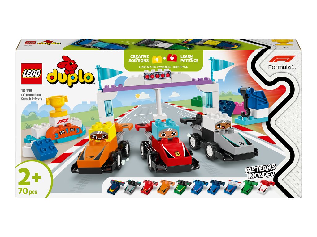 Naštartujte motory a pripravte sa na preteky s modelom Pretekárske autá a šoféri tímu F1® (10445). Dospelí fanúšikovia aj ich mladí členovia posádky môžu zažiť vzrušujúce preteky Formuly 1® na vlastnej koži.