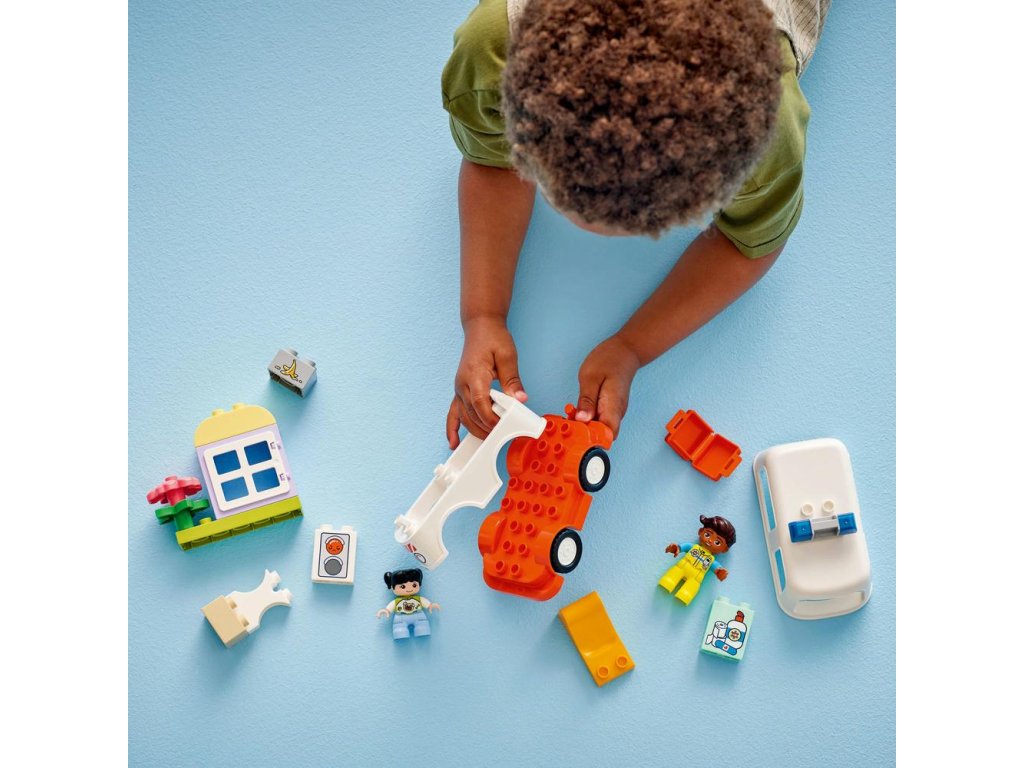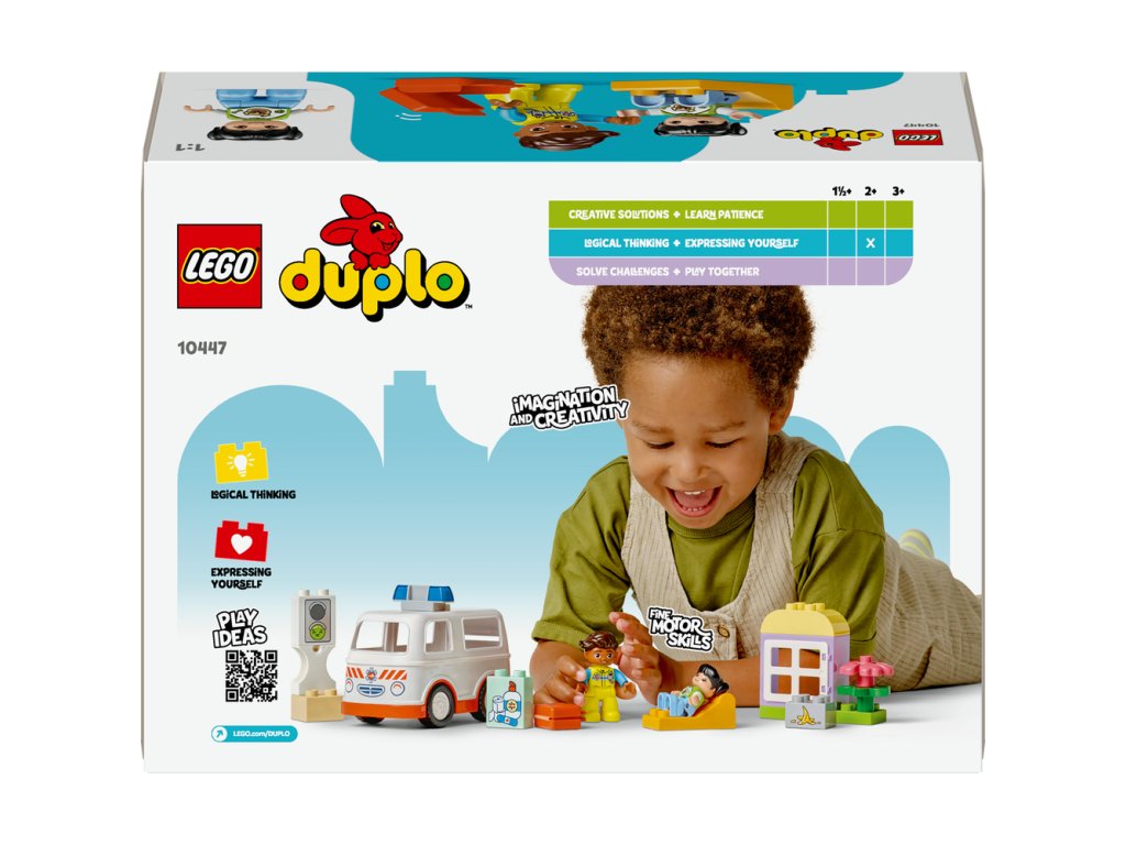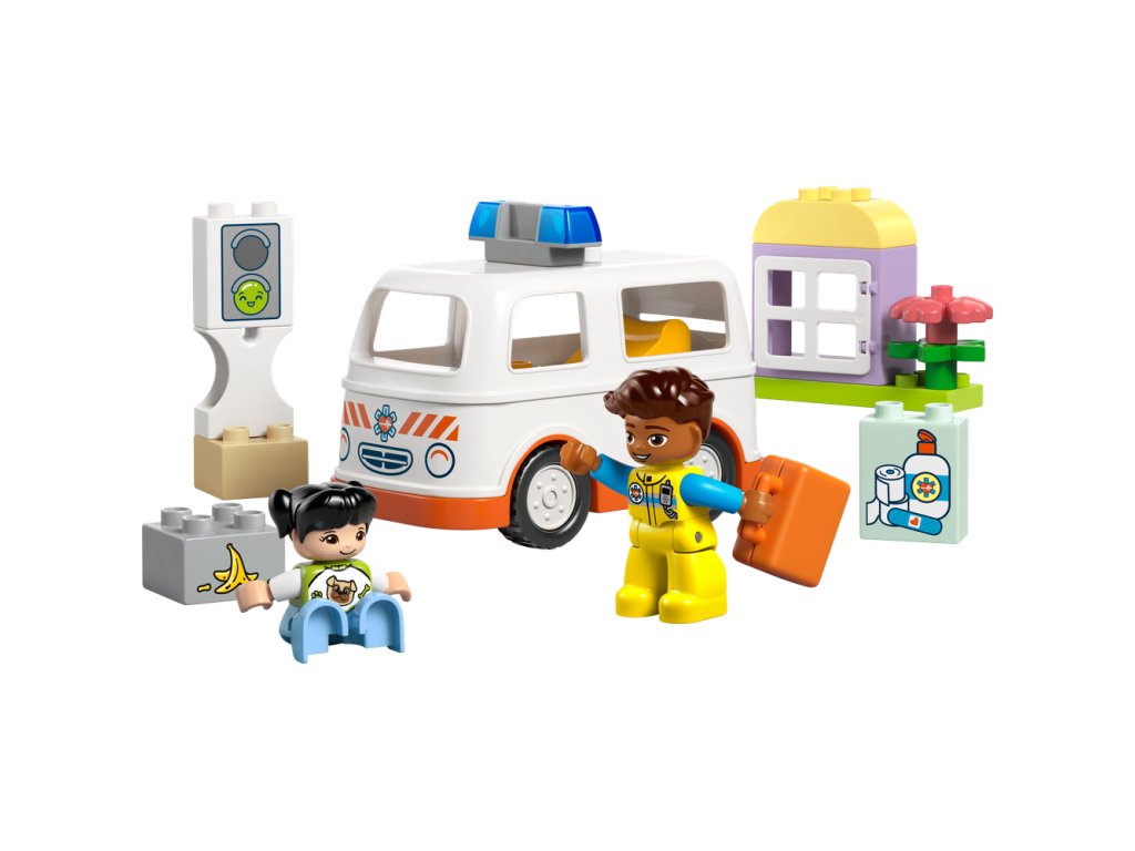 Táto tvorivá hračka LEGO DUPLO bude skvelým darčekom pre batoľatá, ktoré majú rady spoločenské a emocionálne vzdelávacie hry a pomôže im osvojiť si empatiu. Návod na stavanie obsahuje koleso, vďaka ktorému môžu rodičia s deťmi preskúmať rôzne emócie dievčaťa. Deti ním môžu vyjadriť svoje pocity ohľadom toho, keď sa niekto necíti dobre alebo momentu, kedy prvýkrát videli sanitku. Takisto budú rozvíjať svoje logické myslenie počas hry na sled udalostí a jemné motorické zručnosti pri otváraní strechy hračkárskej sanitky, cez ktorú umiestnia dievčenskú postavu dovnútra na sklopenú posteľ. Táto vzdelávacia hračka pomáha malým deťom rozvíjať sociálne zručnosti pri rozhodovaní o tom, ako bude vodič sanitky zaobchádzal s pacientom.