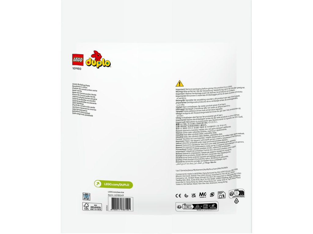 LEGO® DUPLO® Zelená podložka na stavanie (10460) meria vyše 38 cm na výšku aj šírku a deťom od 18 mesiacov tak ponúka dokonalý priestor na stavanie, hranie a vystavenie svojich fantastických výtvorov.