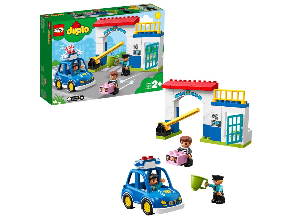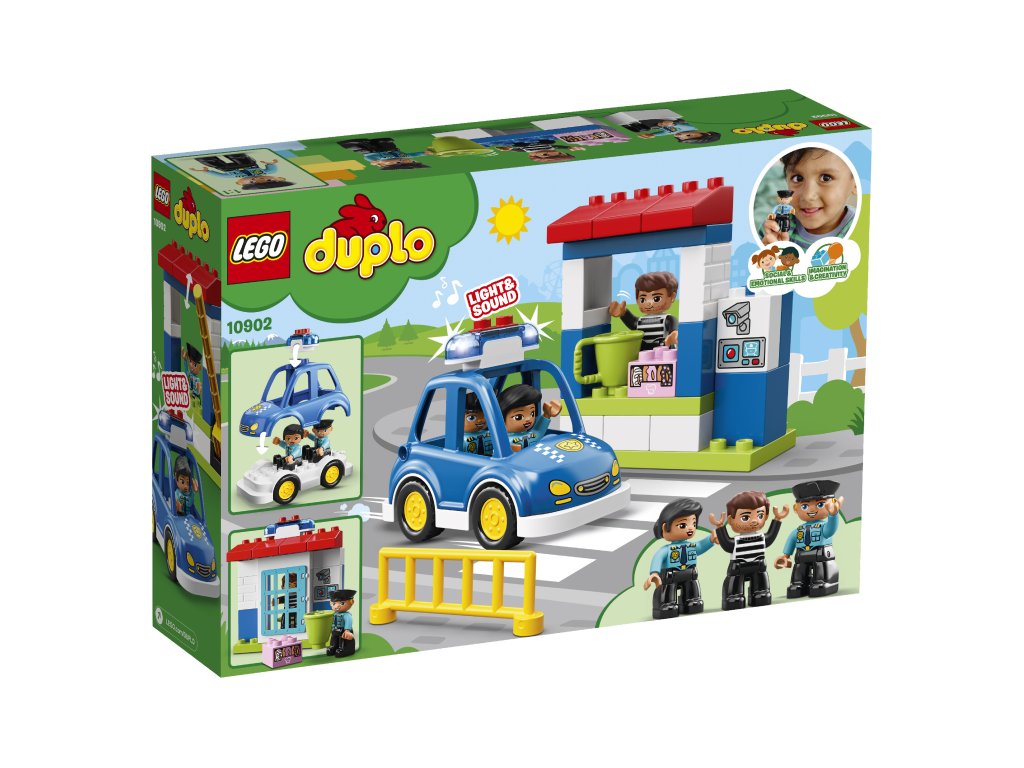 Zinscenujte si scény zo skutočného života v LEGO® DUPLO® Meste: ľahko pochopiteľnom a rozpoznateľnom svete s modernými DUPLO figúrkami. Deti v predškolskom veku budú milovať vytváranie príbehov prostredníctvom hrania rolí na ľahko zostaviteľnej Policajnej stanici 10902. Pomôžte policajtom prefrčať v policajnom aute s blikajúcimi svetlami a zvukom sirény pri naháňaní zločinca s policajtovými šiškami! Potom ho vezmite späť na hračkársku policajnú stanicu a bezpečne ho zamknite vo väzenskej cele. Súprava obsahuje 3 DUPLO figúrky.