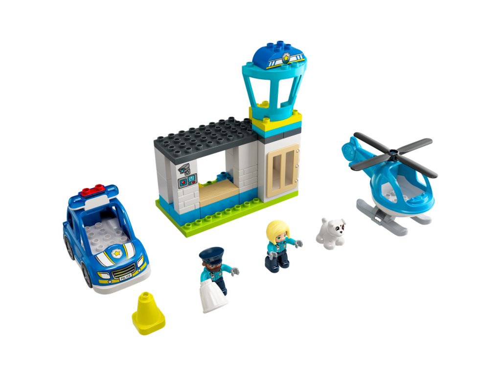 - Policajný set pre najmenších – LEGO® DUPLO® (10959) Policajná stanica a vrtuľník je stavebnica plná postáv a vozidiel, ktoré rozprúdia fantáziu nádejných policajtov
