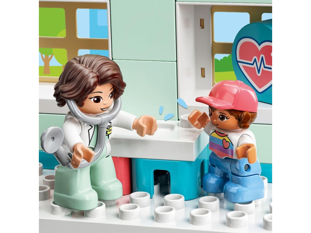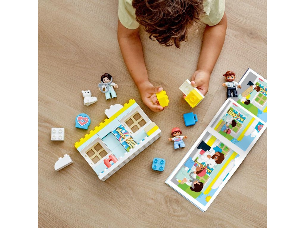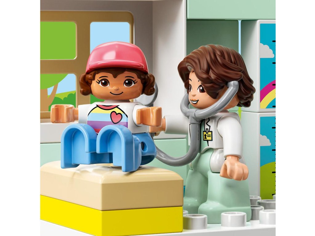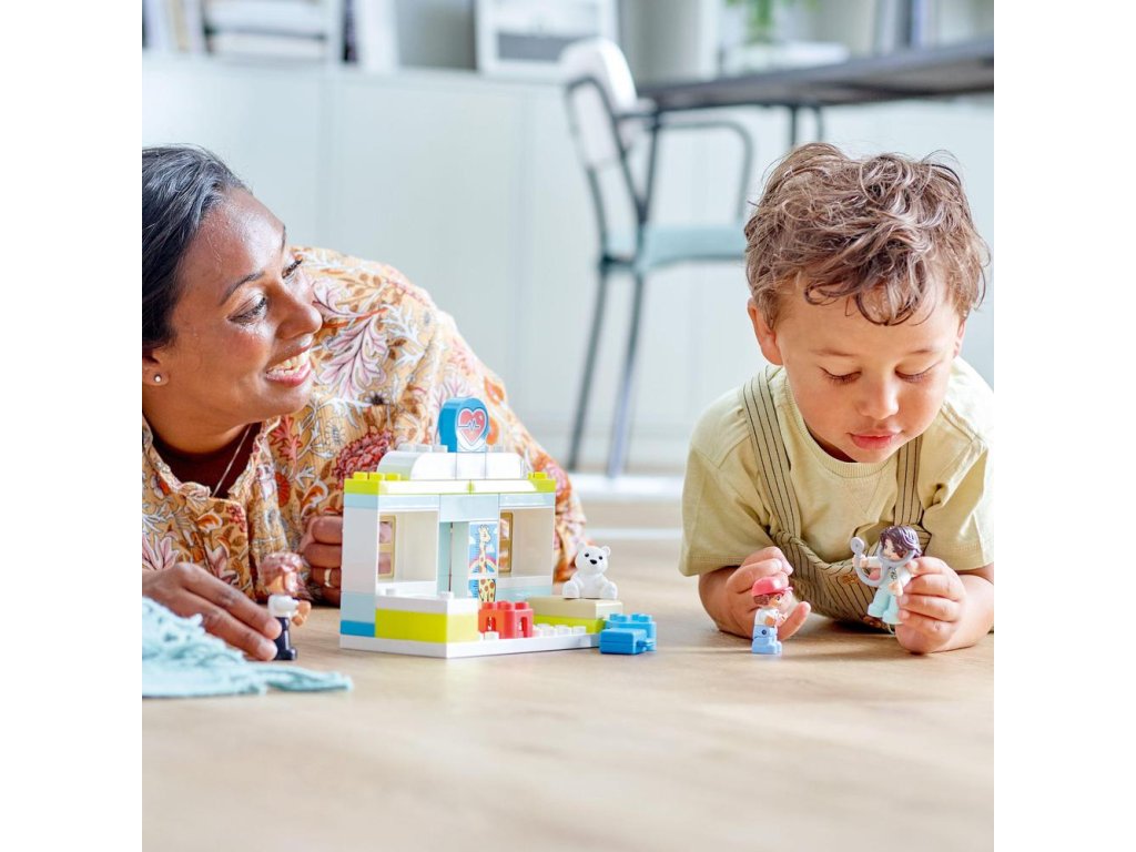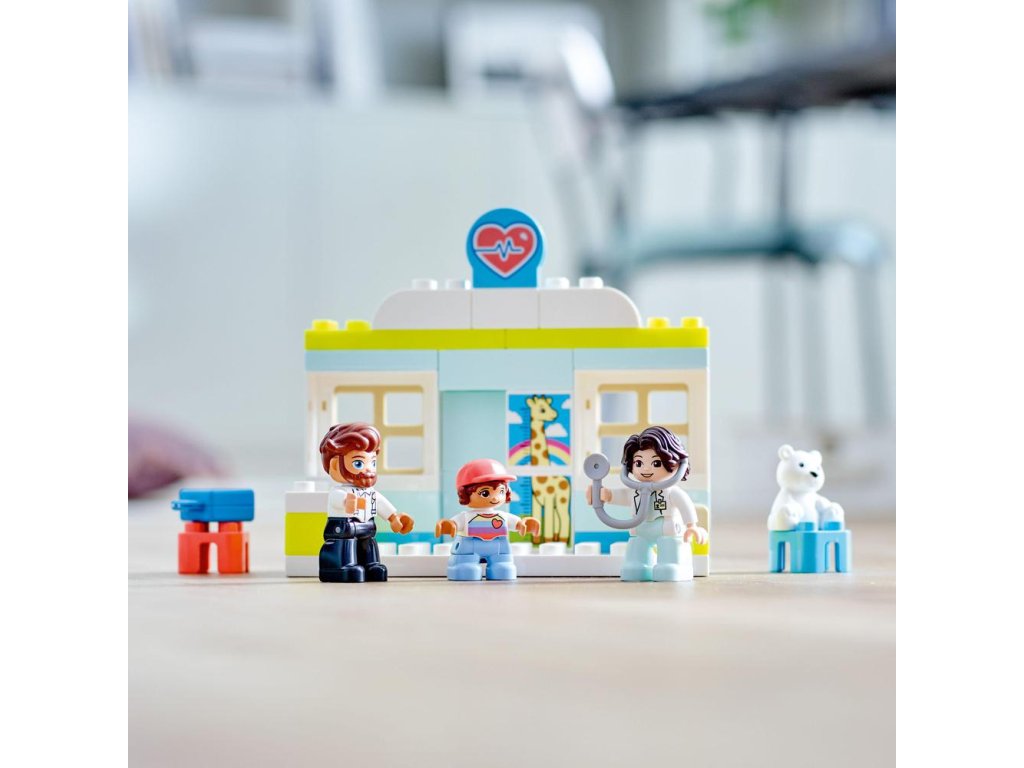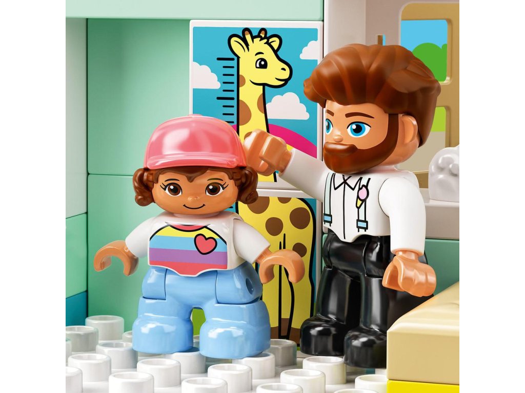 Malí lekári a zdravotné sestry si zamilujú zábavné aktivity u milého lekára v stavebnici LEGO® DUPLO® (10968) Návšteva lekára. Tento všestranný set deti od 2 rokov vynikajúco pripraví na návštevu lekára. Vzdelávací set s lekárom Ukážte predškolákom, koľko zábavy si môžu užiť v lekárskej klinike! Priateľský lekár počúva srdce dieťaťa cez pružný stetoskop (neodpájateľný). Dieťatko má na tričku motív srdca, na stene visí meter v tvare žirafy a nechýba ani umývadlo na umytie rúk či stolička, kam sa môže ocko posadiť. Stavebnica deťom vysvetľuje význam starostlivosti o zdravie, takže je ideálna na rozvoj sociálnych a emocionálnych zručností detí. Škola hrou pre najmenších Hračky LEGO DUPLO deťom vkladajú do rúk zábavu bez hraníc, možnosti sebavyjadrenia a hravého skúmania. Rodičia tak môžu so svojimi najmenšími prežívať vzácne míľniky vo vývoji.