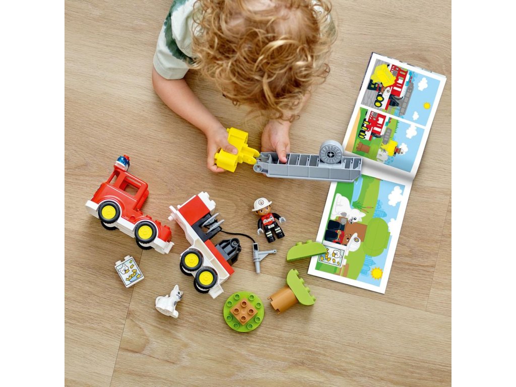 - Autentické – Set obsahuje figúrky LEGO® DUPLO® hasiča a detaily a okrem toho ani zostaviteľný stroj či multifunkčné hasičské auto so žiarivými svetlami a sirénou (batérie sú súčasťou balenia)