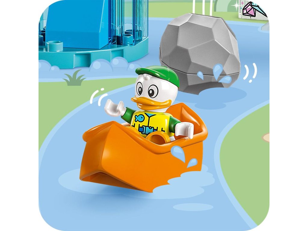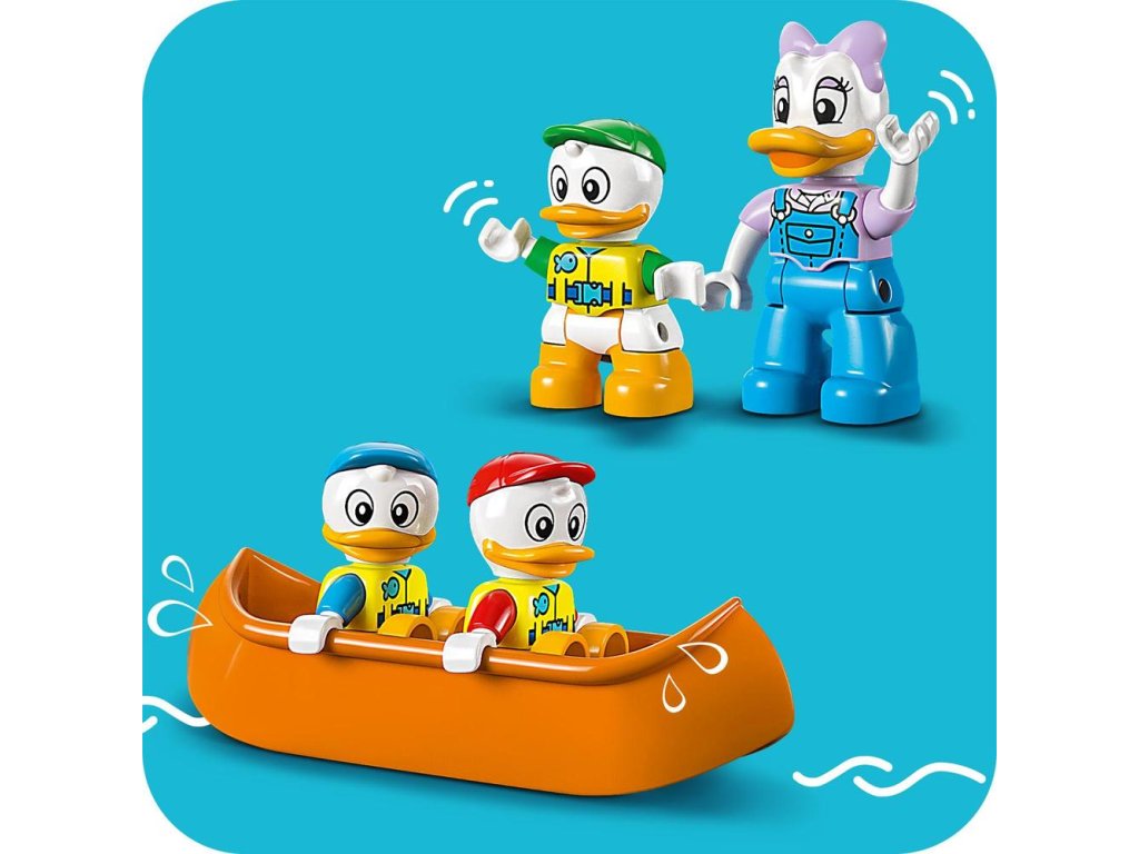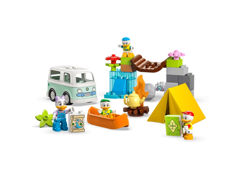 - Mnoho známych tvárí – Obsahuje kanoe, pojazdný karavan a textilný stan, ako aj 4 figúrky LEGO® DUPLO®: Kačka Daisy od Disney a synovcov Hueyho, Deweyho a Louieho