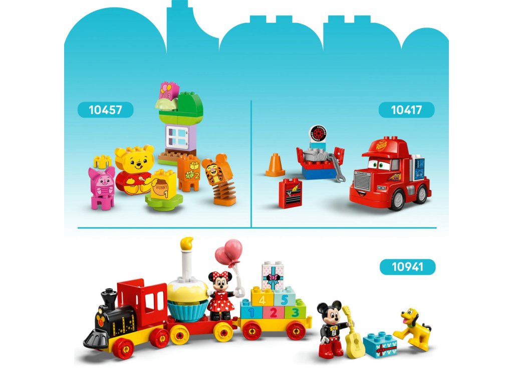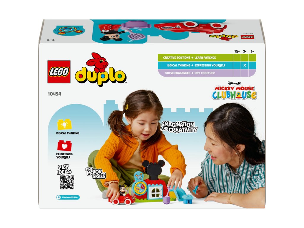 Deti od 2 rokov sa pridajú k Toodlesovi, roztočia koleso na počítači Mousekedoer a vyberú Mickeymu misie v klube, ktoré musí splniť. Táto zostaviteľná hračka pomáha batoľatám učiť sa triediť prostredníctvom tvorivej hry. Deti sa môžu striedať s dospelákmi v otáčaní kolesa a potom použijú svoje triediace schopnosti na spárovanie obrázkov s farebnými doplnkami. Táto stavebnica so zostaviteľným vozidlom ponúka deťom úlohy, ako je doladenie hračkárskeho autíčka pomocou kľúča alebo jeho čistenie vedrom a kefou. Malé rúčky si precvičia zručnosti jemnej motoriky popri skúmaní pútavých prvkov modelu, ako je sklopnéokno, zostaviteľná šmykľavka a točiace sa kolesá auta. Táto detská stavebnica LEGO® DUPLO® inšpiruje batoľatá k tomu, aby zapojili svoju fantáziu a sebavyjadrovacie schopnosti a vymýšľali vlastné tvorivé dobrodružstvá v klube Mickeyho Mousea.