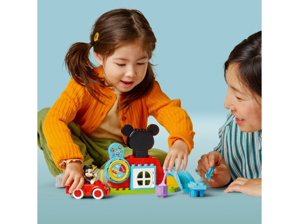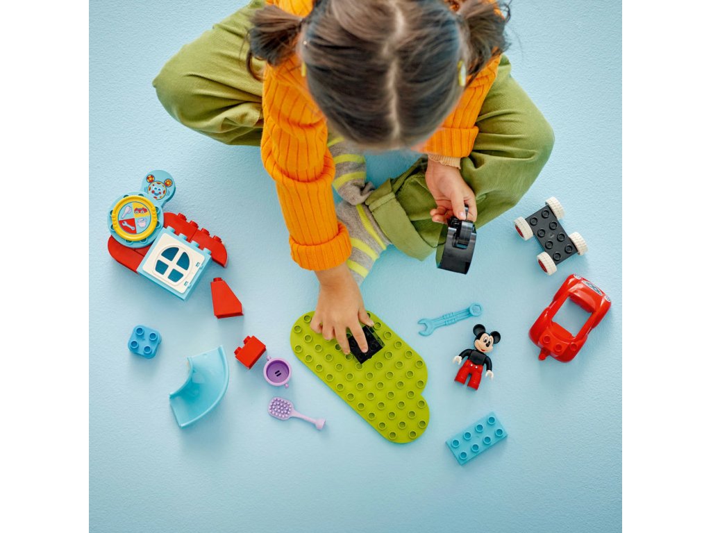 - Hračka s Mickey Mouseom pre batoľatá – Stavebnica LEGO® DUPLO® ǀ Disney Mickey Mouseov klub a auto inšpiruje najmenšie deti k aktivitám a hrám na postavy
