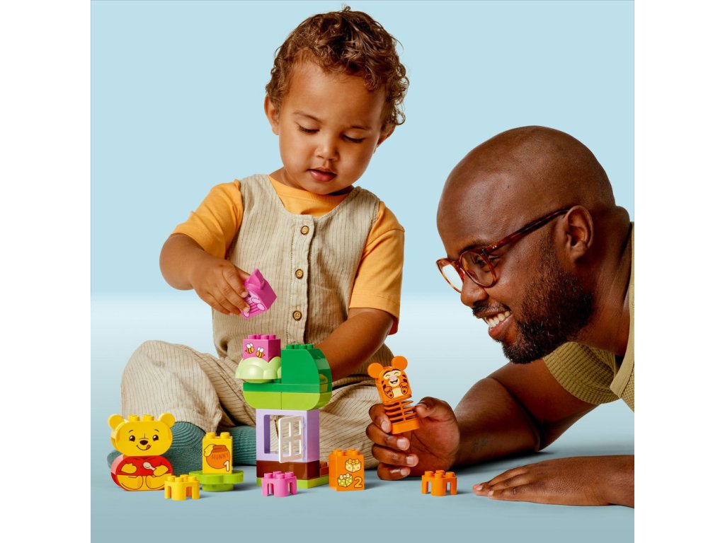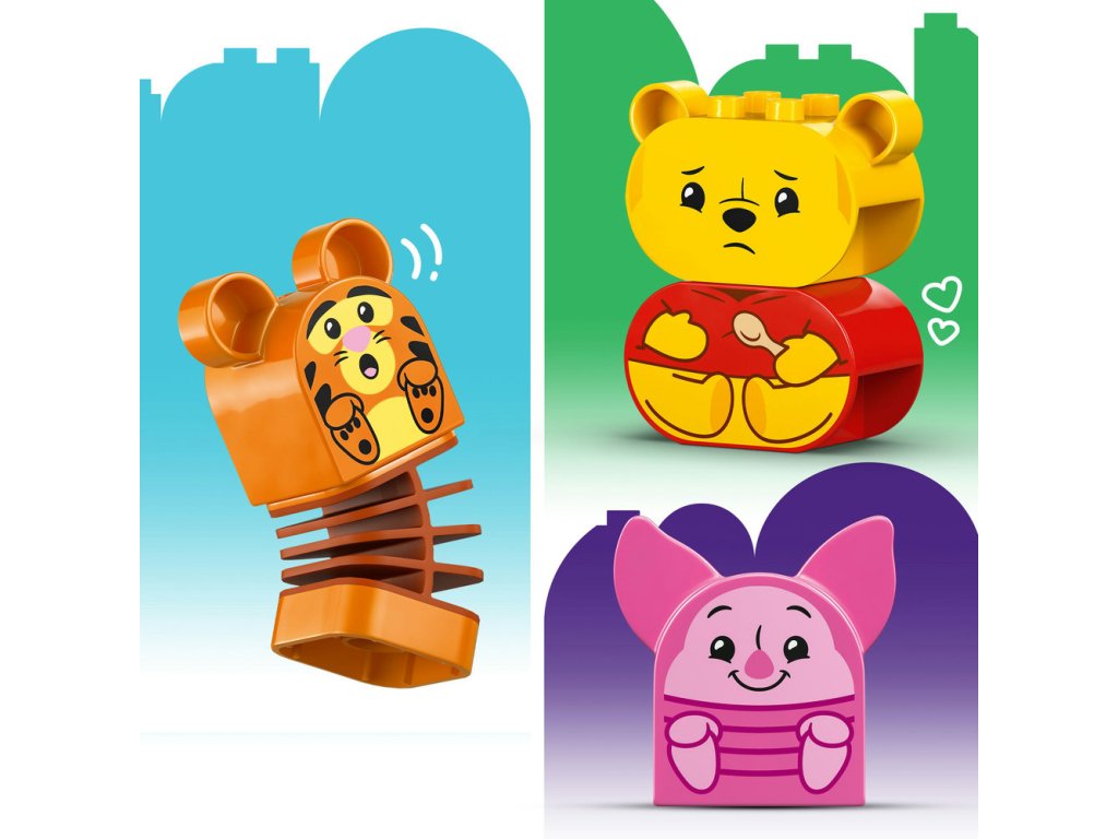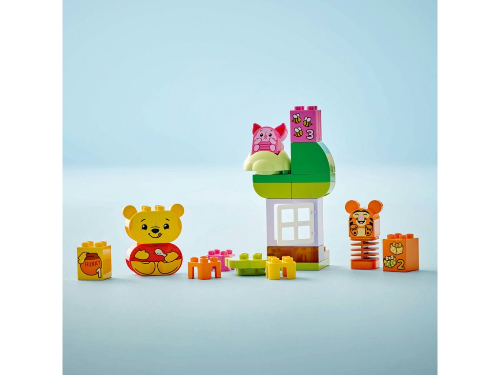 - 3 zostaviteľné zvieratká LEGO® DUPLO® – Obsahuje ikonické figúrky LEGO DUPLO Disney: Macka Pú, Tigra a Prasiatka, darčeky a domček na strome, ktoré podnietia zábavné a nápadité hry