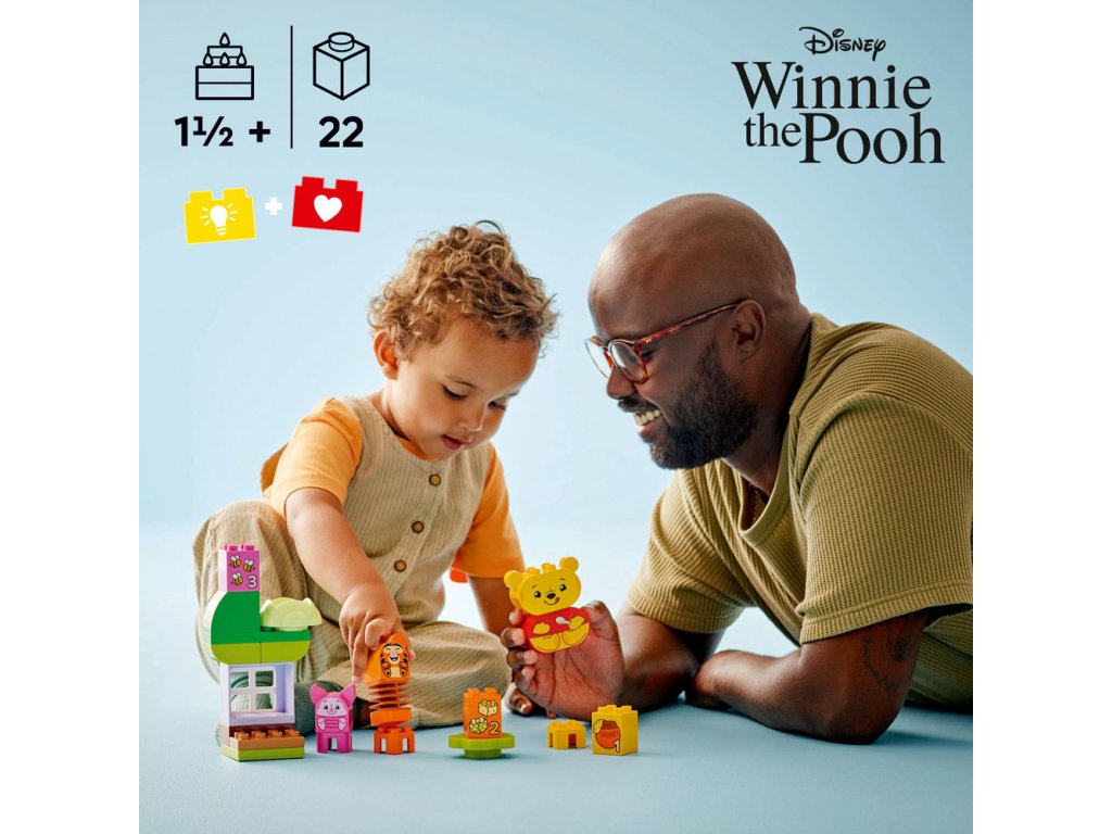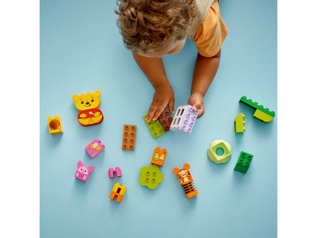 - Zábavná vzdelávacia stavebnica – Batoľatá si užijú oslavu a precvičujú svoje rané zručnosti so stavebnicou LEGO® DUPLO® ǀ Disney Narodeninová oslava Macka Pú