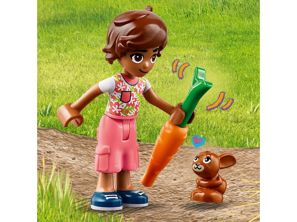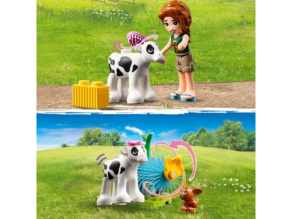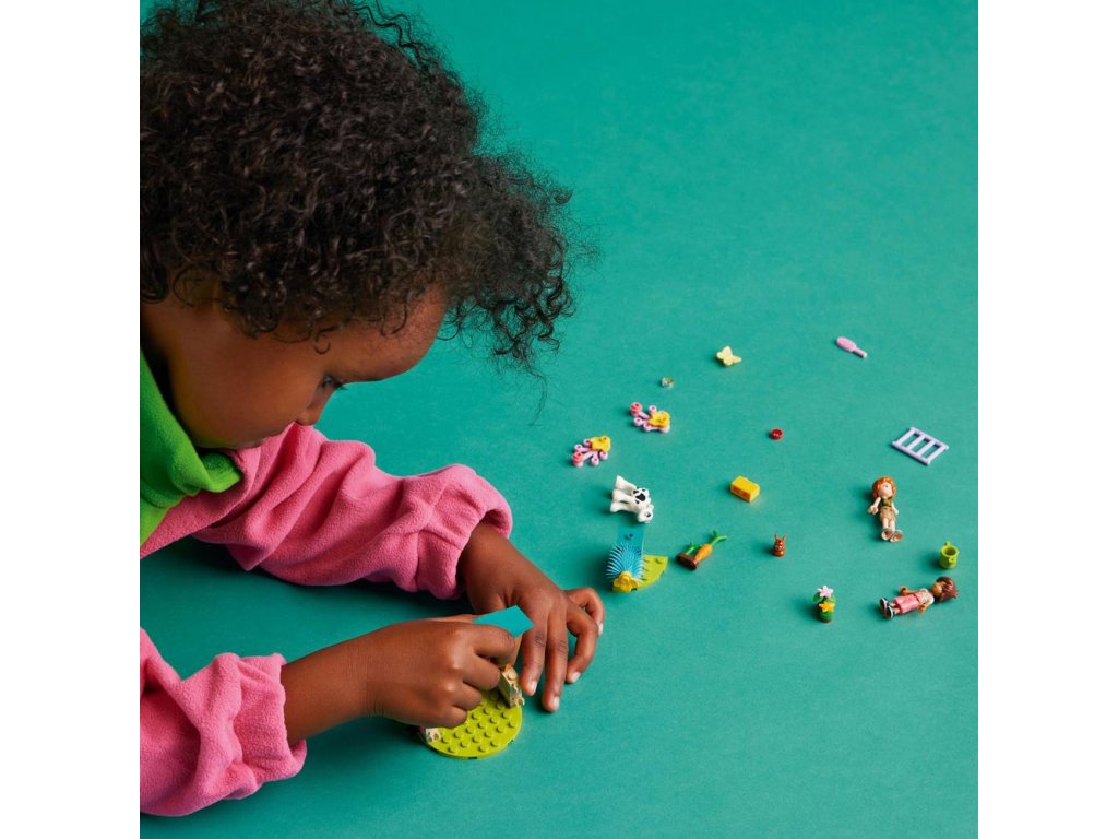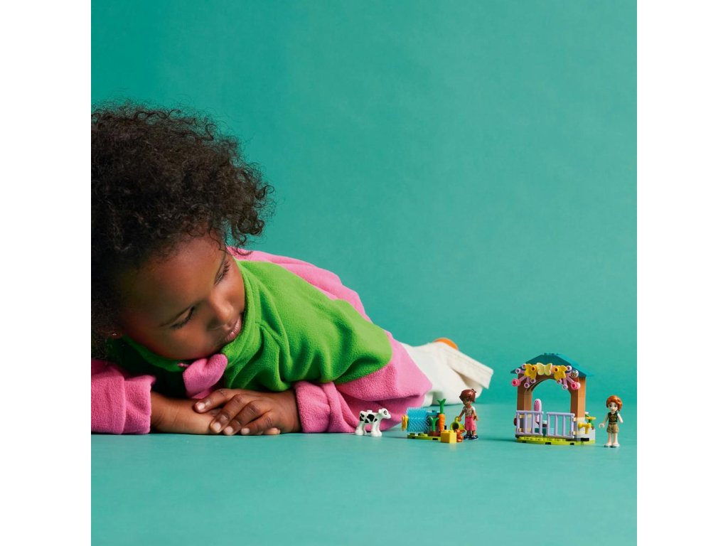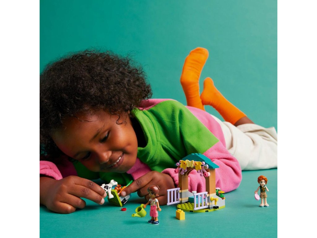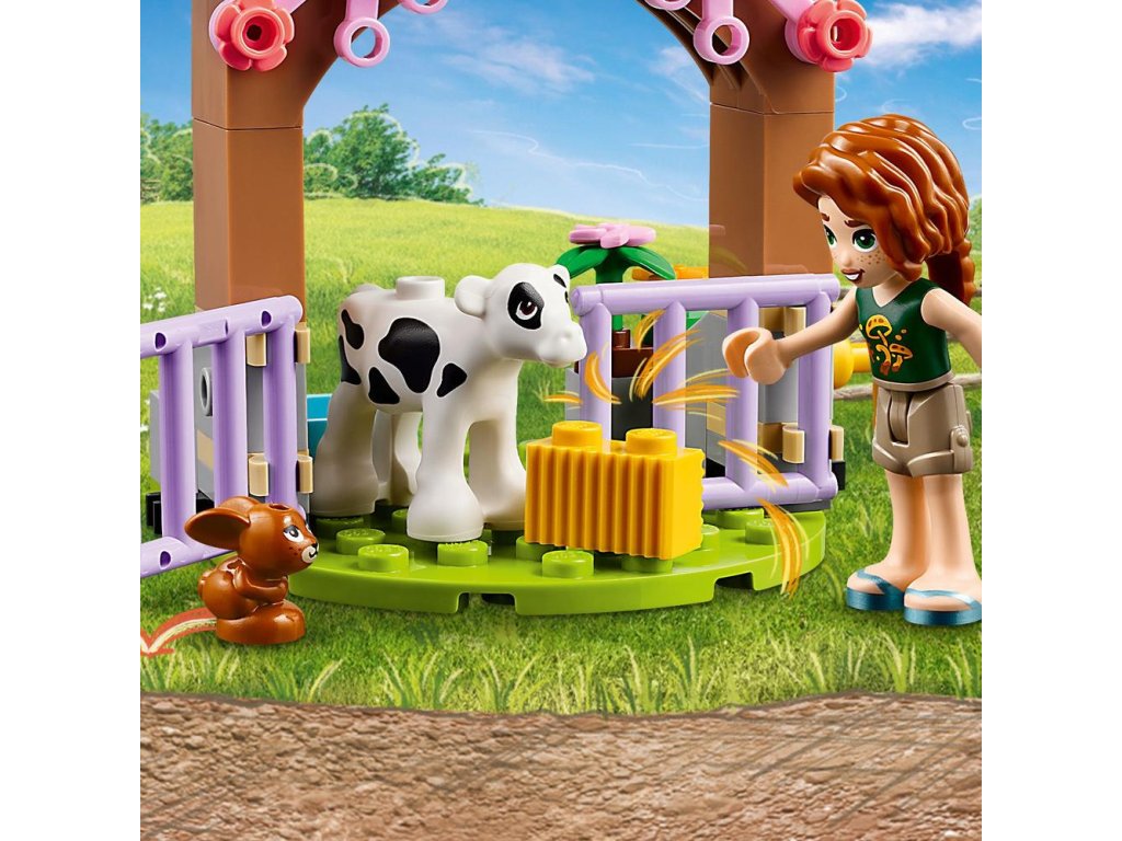 Deti, ktoré milujú hru so zvieratkami z farmy, si užijú dobrodružnú hru na postavy a môžu umývať a česať teliatko a zbierať mrkvy pre zajačika. Stavebnica sa dodáva s minifigúrkami Autumn a Leo, ktoré podnietia zábavnú hru na priateľstvo. Stajňa má otváracie dvere a bočná stavba obsahuje rotujúcu kefu.