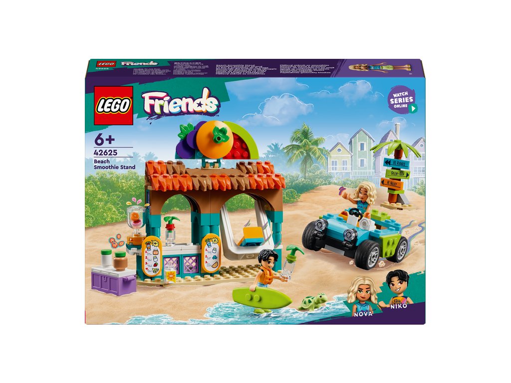 Inšpirujte deti k tvorivosti s touto stavebnicou LEGO® Friends Plážový stánok so smoothies (42625) pre dievčatá a chlapcov od 6 rokov. Model obsahuje zostaviteľný pult na smoothies aj zostaviteľnú plážovú buginu, ako aj minibábiky LEGO Friends Novy a Nika.