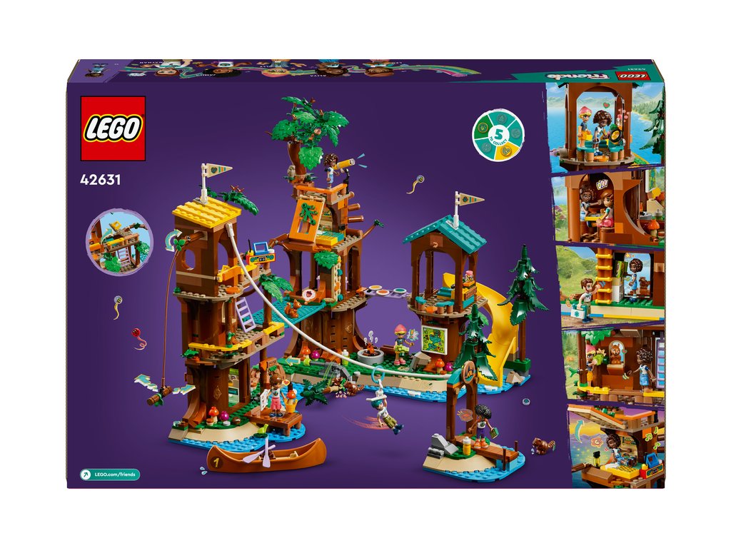 Stavebnica LEGO® Friends Dobrodružný tábor – dom na strome (42631) je plná príbehov pre dievčatá a chlapcov od 8 rokov. Deti môžu vymyslieť príbehy o kamarátoch Leovi, Aliyi, Jamille a Ollym, ktorí spolu s vedúcim tábora Jonathanom skúšajú nové vzrušujúce aktivity.