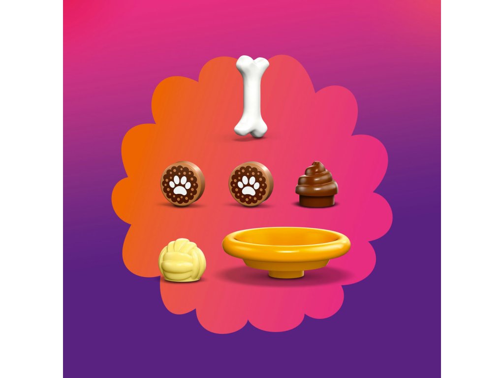 - Doplnky pre psíkov – Táto stavebnica obsahuje zábavné doplnky na tvorivé hry na postavy vrátane lopty, keksíkov pre psíkov a kosti, ako aj kúsok psieho hovienka, ktorý deti zaručene rozosmeje