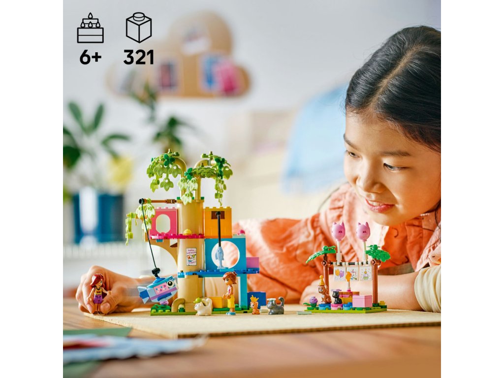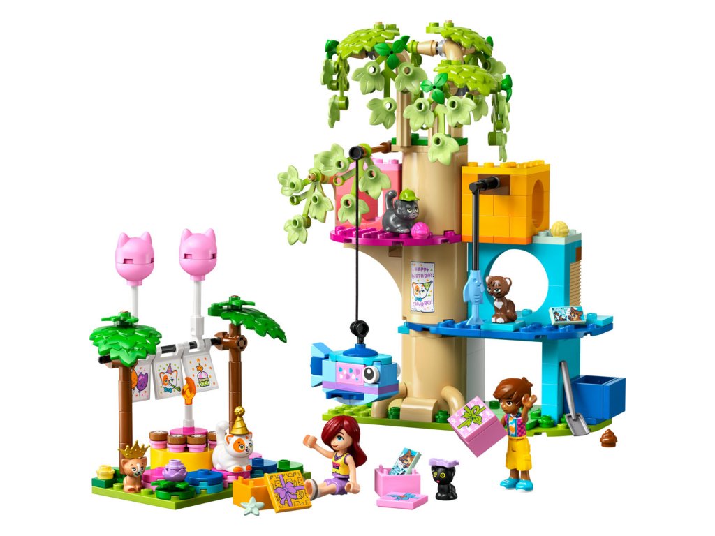 - Stavebnica pre deti, ktoré milujú mačky – Táto stavebnica LEGO® Friends Mačacia narodeninová oslava a domček na strome pre dievčatá a chlapcov od 6 rokov obsahuje 2 minibábiky a 5 figúrok mačiek na tvorivé hry