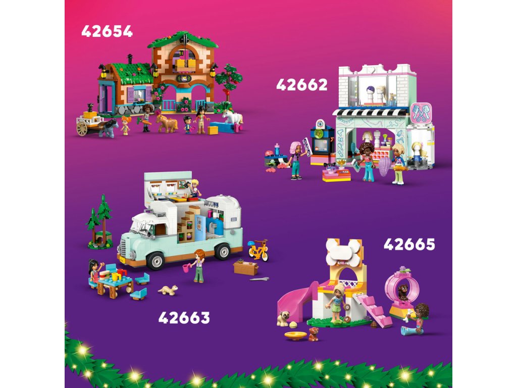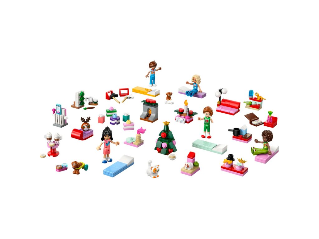 - LEGO® Friends Adventný kalendár 2025 – Tento Adventný kalendár pre deti je plný 24 prekvapení pre dievčatá a chlapcov od 6 rokov, ktorí môžu postaviť scénu zo sviatočnej prespávačky