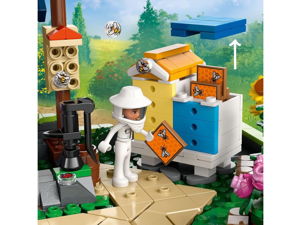 - Včelárska stavebnica pre deti a tínedžerov – Tento dom včelárov a kvetinová záhrada pre deti od 12 rokov obsahuje 4 minibábiky a 2 figúrky zvierat LEGO®, ako aj množstvo doplnkov
