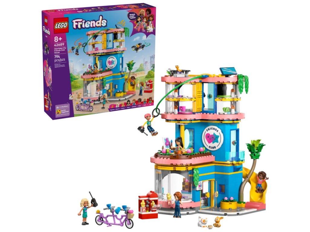 - DARČEK PRE DETI – Stavebnica LEGO® Friends Klubovňa kamarátov v mestečku Heartlake (42689) poteší ako kreatívny narodeninový darček pre dievčatá a chlapcov od 8 rokov, ktorí radi rozprávajú príbehy a hrajú sa na scénky