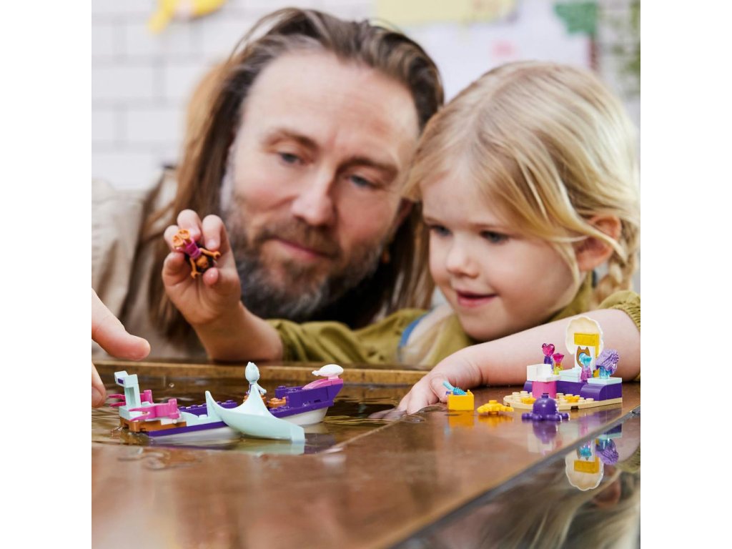 Stavebnica LEGO® Gabi a Rybomačka na luxusnej lodi (10786) pre deti od 4 rokov je plná zábavy s kamarátmi, krásy a luxusných zážitkov! Fanúšikovia seriálu Gabinin kúzelný domček od štúdia DreamWorks Animation si zamilujú tento očarujúci model. Kúpele na výletnej lodi Deti, ktoré milujú hračkárske lode, kozmetické salóny a kreatívnu hru čakajú s touto všestrannou stavebnicou nekončiace tvorivé dobrodružstvá s mačkami. Stavebnica obsahuje minibábiku Gabi, figúrku Rybomačky, zostaviteľnú loď, salón krásy a takisto aj množstvo doplnkov vrátane slnečných okuliarov, hviezdičiek, záchrannej vesty, zrkadla, kefy, prípravkov na vlasy a náhradnej parochne pre Gabi. K dispozícii je aj farebný obrázkový návod a aplikácia LEGO Builder zasa obsahuje digitálne intuitívne nástroje na zväčšovanie a otáčanie modelom. A so štartovacou kockou v podobe prvku lode sa môže zábavné stavanie hneď začať! Zábava pre celú rodinu