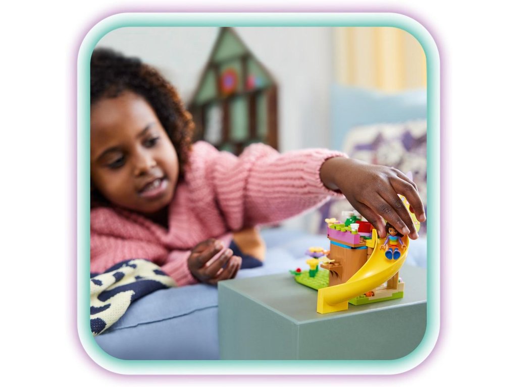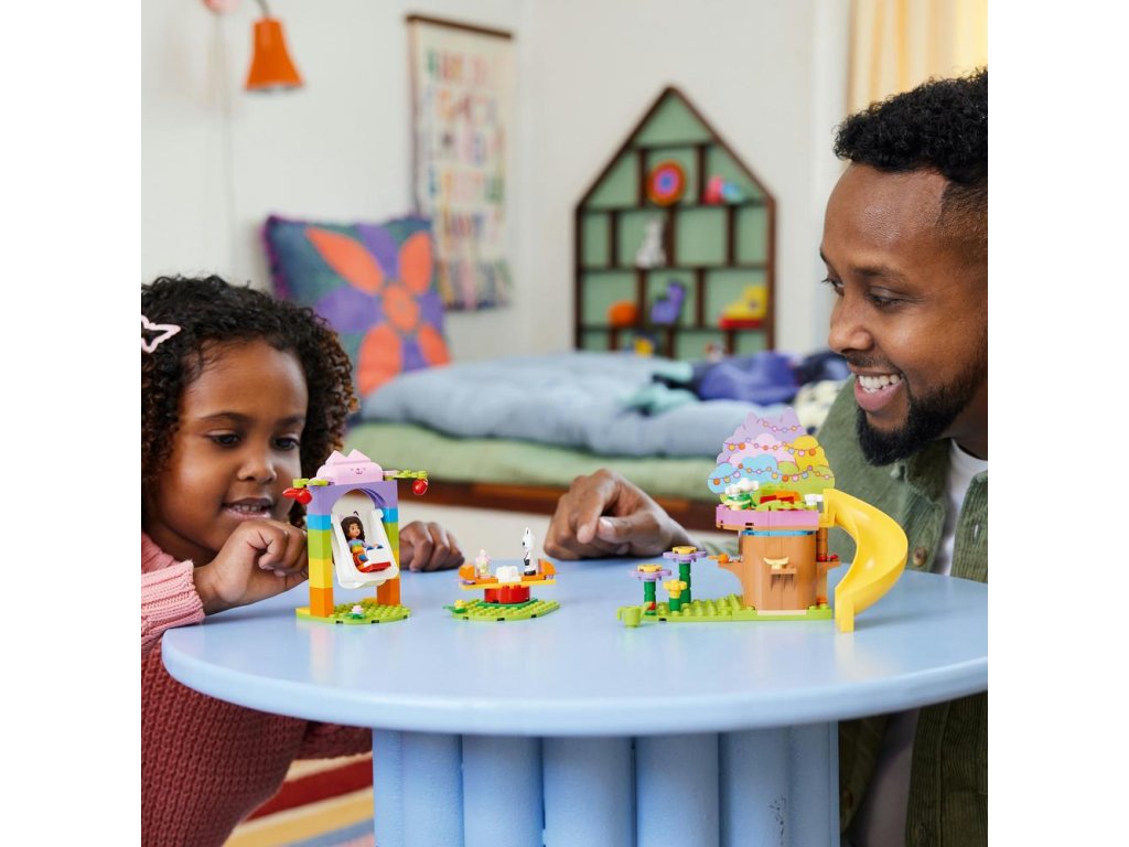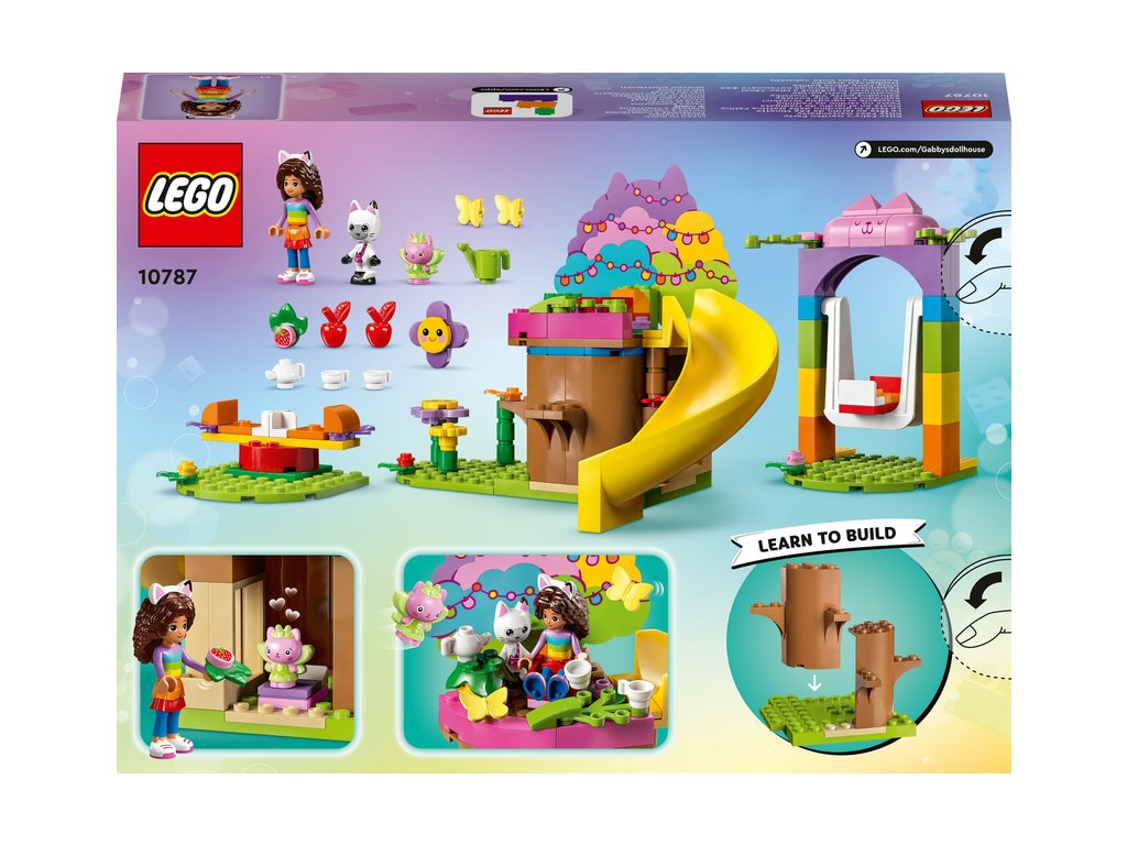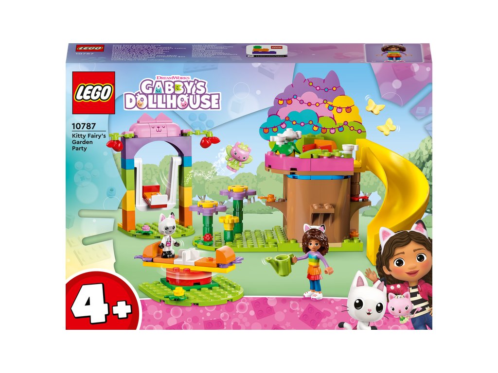 Vezmite fanúšikov televízneho seriálu Gabinin kúzelný domček od 4 rokov na čarovné miesto plné zábavy, priateľov a nekonečných herných možností so stavebnicou LEGO® Záhradná párty Víly mačičky (10787). Hračkársky domček na strome plný aktivít Gabi, Pandy Ťapka a Víla mačička z obľúbeného televízneho seriálu pijú čaj v domčeku na strome, kde má Víla mačička posteľ a jahodové občerstvenie. Malí záhradníci tu môžu pestovať kvety a ich kamaráti sa môžu prísť hrať na šmýkačke, hojdačke a kolotoči. Príslušenstvo vrátane jabĺčok, kanvy, čajníka, šálok a motýľov inšpiruje deti k nápaditým hrám na postavy. K dispozícii je aj farebný obrázkový návod a aplikácia LEGO Builder zasa obsahuje digitálne intuitívne nástroje na zväčšovanie a otáčanie modelov. Rovnako ako pri všetkých stavebniciach zo série LEGO 4+ je súčasťou balenia aj veľká štartovacia kocka, s ktorou sa deti môžu pustiť rovno