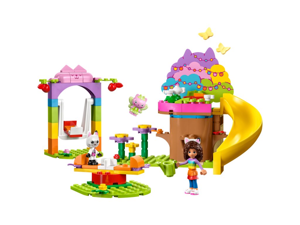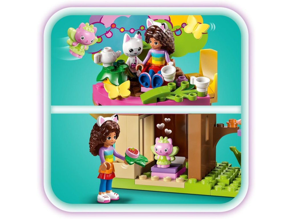 - Kultové postavy – Obsahuje minifigúrku Gabi, figúrky Pandy Ťapky a Víly mačičky a zostaviteľný domček na strome s posteľou, občerstvením a záhradou so šmykľavkou, hojdačkou a kolotočom.