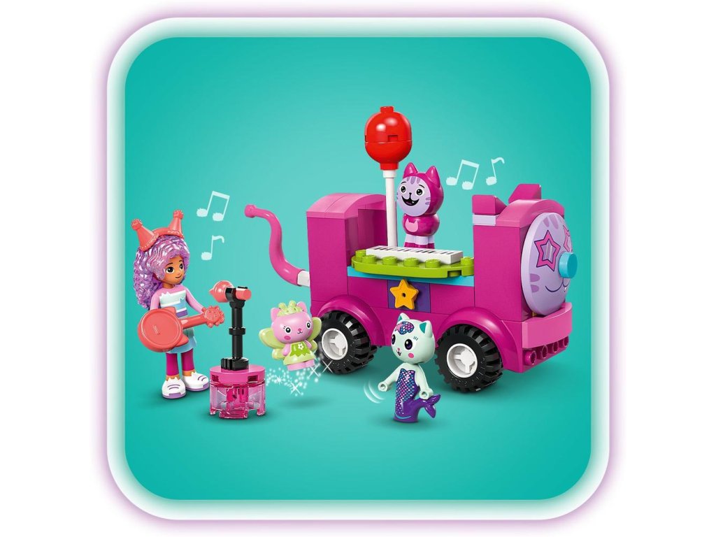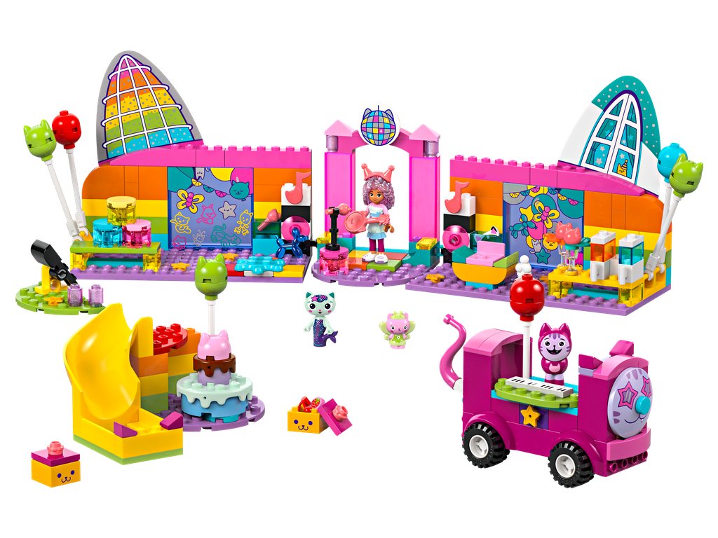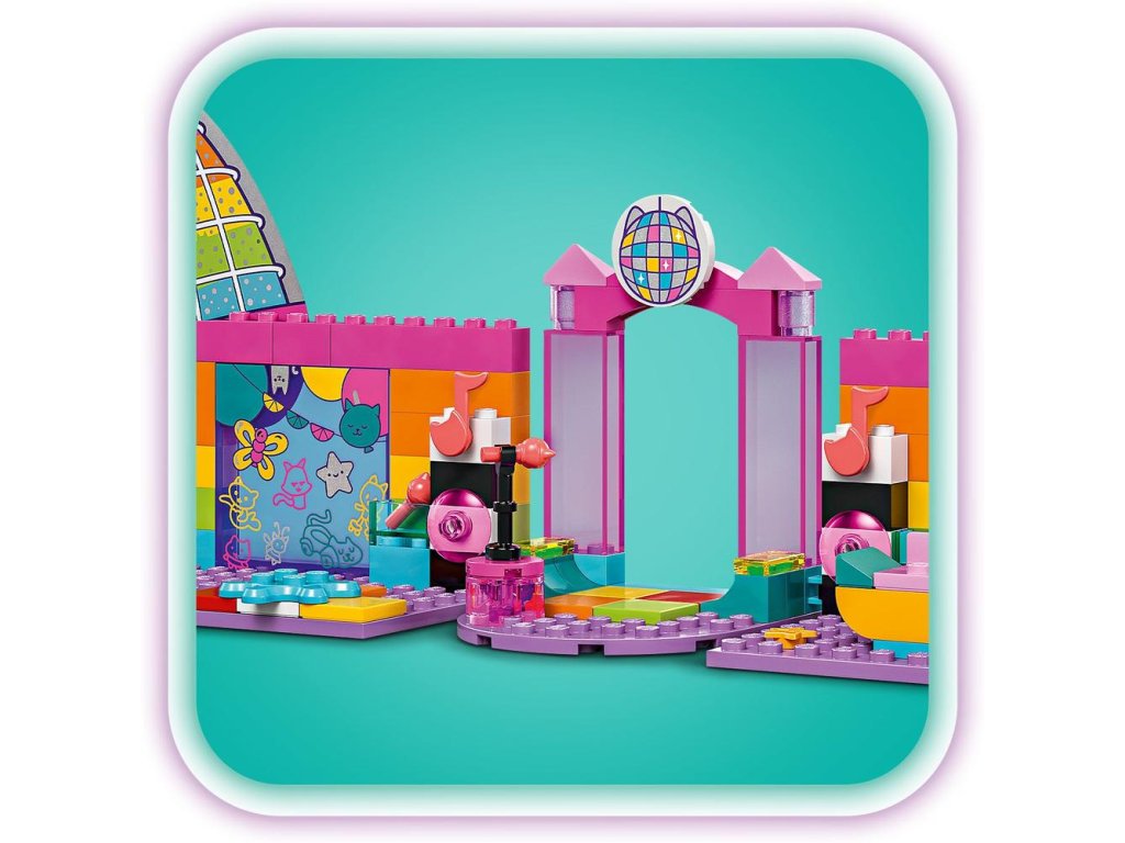 Tento diskotékový model a ešte viac je výborná hračka pre dievčatá a chlapcov! S postavičkami Gabi, „DJ“ Danielom Jamesom Kocúrom, Vílou mačičkou a Rybomačkou a rôznymi hudobnými párty hračkami vrátane pohyblivej párty autobusu so zabudovanou klávesnicou, rotujúceho tanečného parketu, gitary, 2 mikrofónov a trblietavej diskogule je scéna pripravená na nekonečné tvorivé hry! Medzi doplnky patria aj balóny a kolieskové korčule na diskotéku na kolieskových korčuliach, pukance, 2 poháre ľadovej triešte vchill-out zóne a katapult a plechovky pre hru na vybíjanie. Pre Gabiho je pripravené torta a darčeky, ktoré budú doručené šmykľavou. Stavebnica sa dodáva s veľkou štartovacou kockou, ktorá deťom pomôže začať stavať. Farebný obrázkový príbehový návod posk ytne intuitívne pokyny na stavanie.