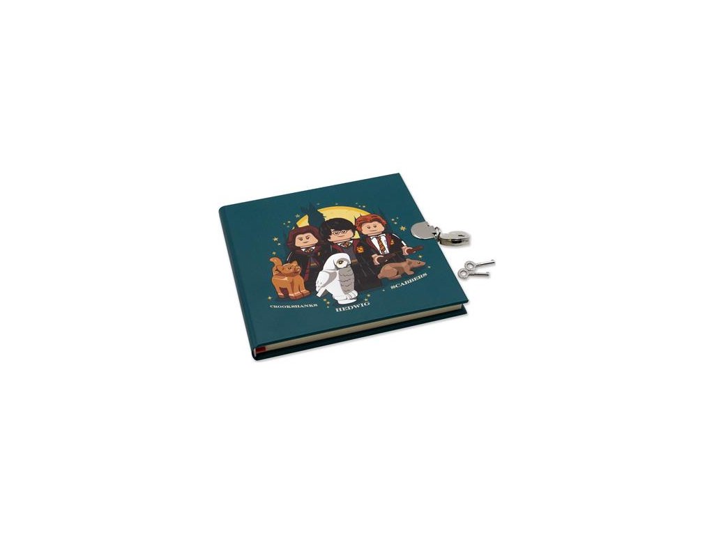 - LEGO® Harry Potter™ Box so zápisníkom – Tento pevný darčekový box má magnetické zatváranie a nájdete v ňom 176-stranový zápisník s kovovým zámkom, kľúčiky a ďalšie písacie potreby s motívom LEGO Harryho Pottera