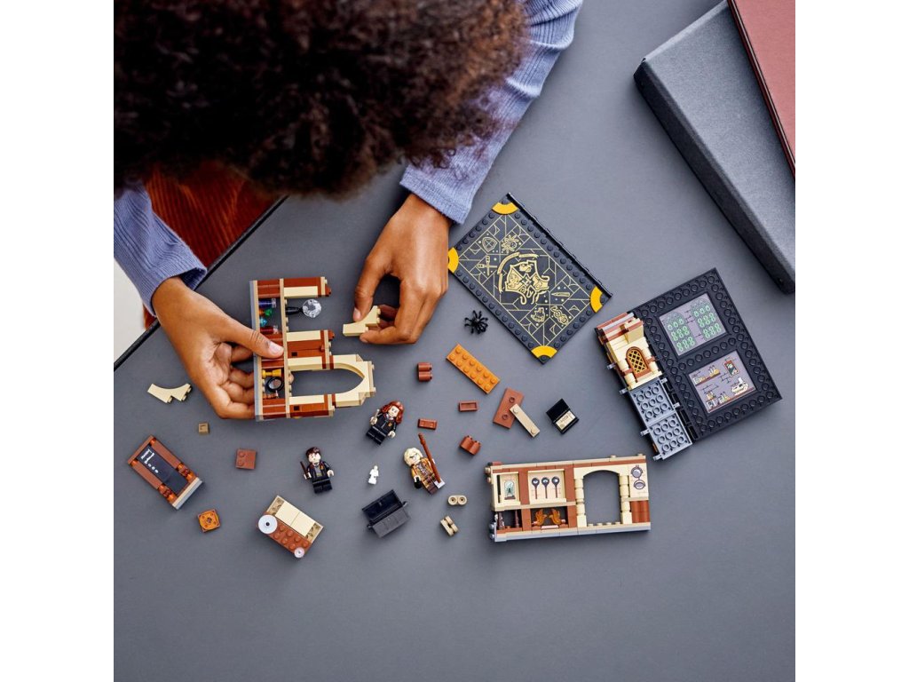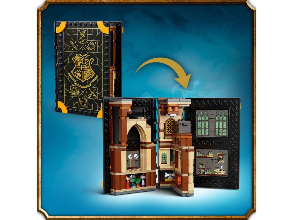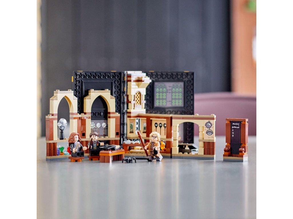 - Kúzelné možnosti na hranie – Vnútri hernej knižky zo série LEGO® Harry Potter™ Čarovné momenty z Rokfortu (76397): Hodina obrany proti čiernej mágii sa nachádza učebňa plná prvkov, ktoré nadchnú nápaditú hru na postavy