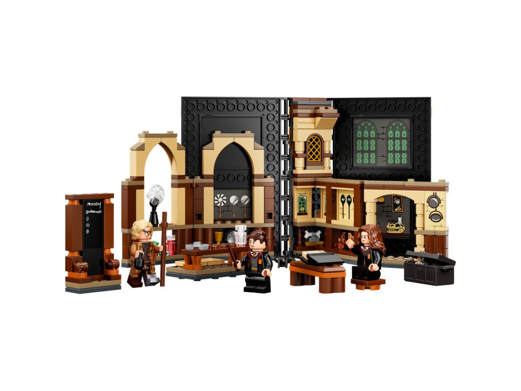 - Úchvatná zábava – Keď deti otvoria svoju hernú knižku LEGO®, razom sa prenesú na hodinu obrany proti čiernej mágii profesora Divookého Moodyho. Vedľa v jeho kancelárii je kufrík s mini-Moodym!