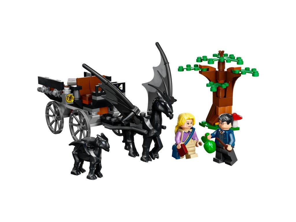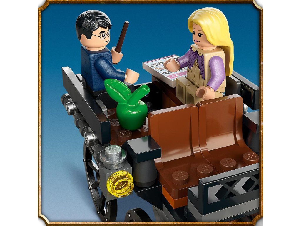 - Ikonické postavy – súčasť sú minifigúrky Harryho Pottera a Luny Lovegoodovej, dospelá testrala s mlaďaťom tiež zostaviteľný koč, ktorého môžete testovať zapriahnuť
