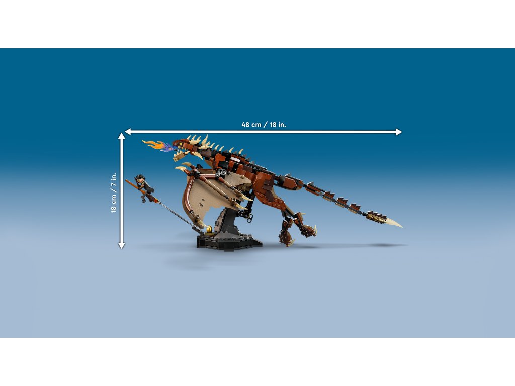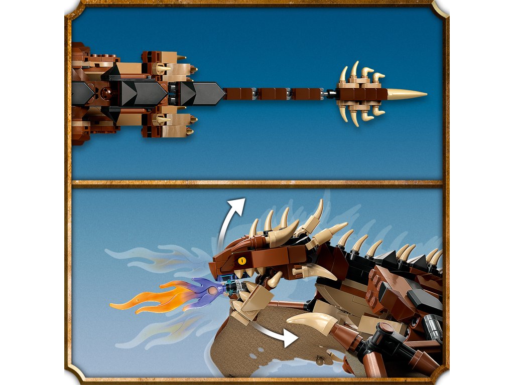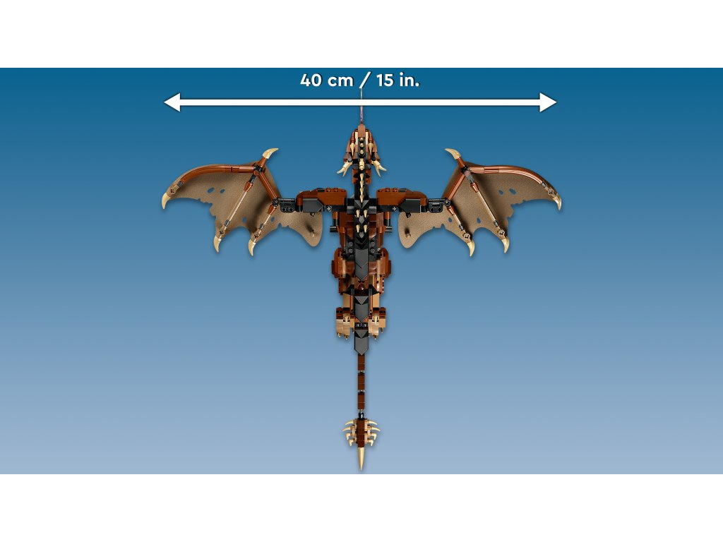 - Legendárny drak – fanúšikovia Harryho Pottera budú doslova očarené stavebnicou LEGO® Harry Potter™ Uhorský chvostorožec (76406) s pôsobivými detailmi a kĺbovými krídlami, ktorými drak dokáže ladne mávať nahor a nadol