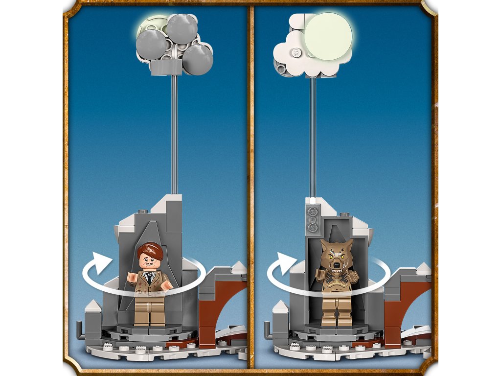 - Čarovné funkcie – Zúrivá vŕba rozhadzuje konármi okolo seba a môže zasiahnúť alebo zdvihnúť minifigúrky zo zeme a profesor Lupin sa premení na vlkolaka, len čo spoza mrakov vykukne žiarivý mesiac v splne.
