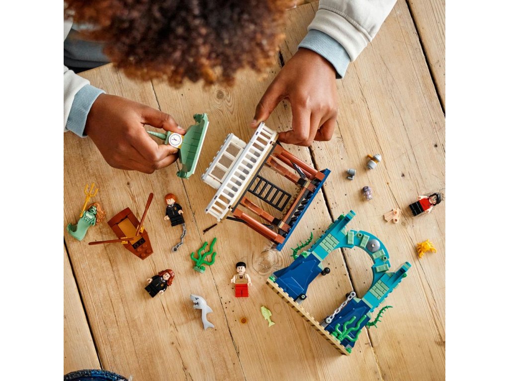 - Scéna pod hladinou Čierneho jazera – Nechýba zrúcanina oblúka s 2 ohybnými dielikmi LEGO® na vyvolanie dojmu, že sa Hermiona Grangerová a Ron Weasley™ pod vodou vznášajú, ak tomu 2 jaskyne so skrytým pokladom