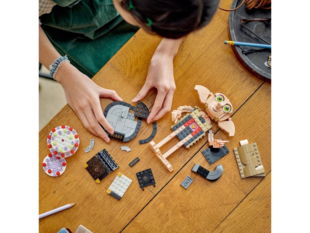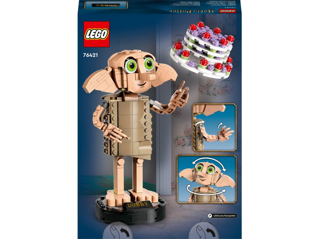 Potešte fanúšikov Harryho Pottera vôbec prvým modelom Domového škriatka Dobbyho z LEGO® kociek. Táto okamžite rozpoznateľná figúrka z kociek má polohovateľnú hlavu na rôzne vzhľady a polohovateľné ruky a prsty, takže Dobby môže držať priložené kultové doplnky v rukách. K dispozícii je aj detailný zostaviteľný model ponožky Harryho Pottera s denníkom Toma Riddla, ktorý Harry použil na oslobodenie Dobbyho, a „lietajúci“ pudingový koláč tety Petunie, ktorý vám pripomenie ikonické filmové scény. Zberateľský model na stavanie a vystavenie Tento zostaviteľný model Domového škriatka Dobbyho meria viac než 19 cm na výšku. Stavebnica bude kúzelným darčekom pre deti od 8 rokov a všetkých zberateľov predmetov s tematikou Harryho Pottera. Umiestnite figúrku Dobbyho na zostaviteľný podstavec s ceduľkou a dokončite tým svoj výstavný kúsok, ktorý určite upúta pozornosť každého okoloidúceho. Nový spôsob stavania