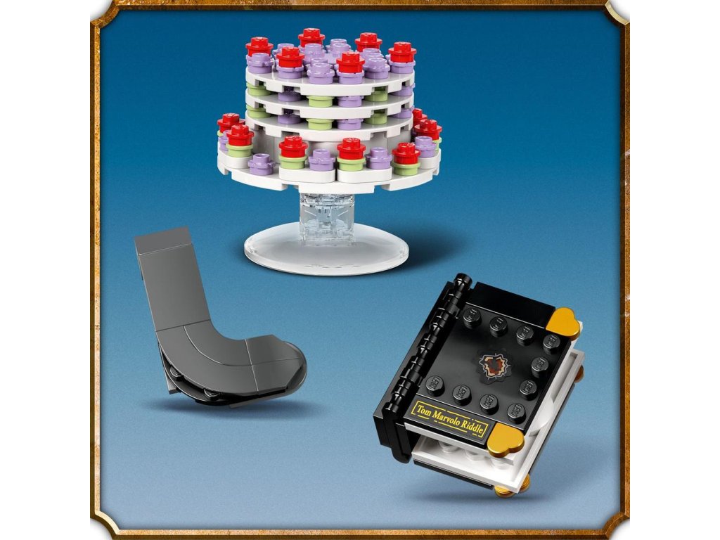 - Ikonické doplnky – Deti si môžu zinscenovať známe momenty z filmu pri stavbe „lietajúceho“ pudingového koláča tety Petunie a prepracovaného modelu denníka Toma Riddla s ponožkou Harryho Pottera