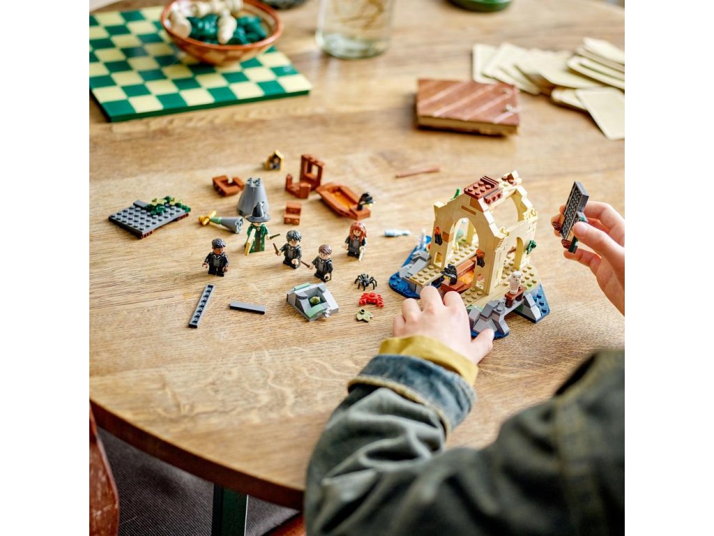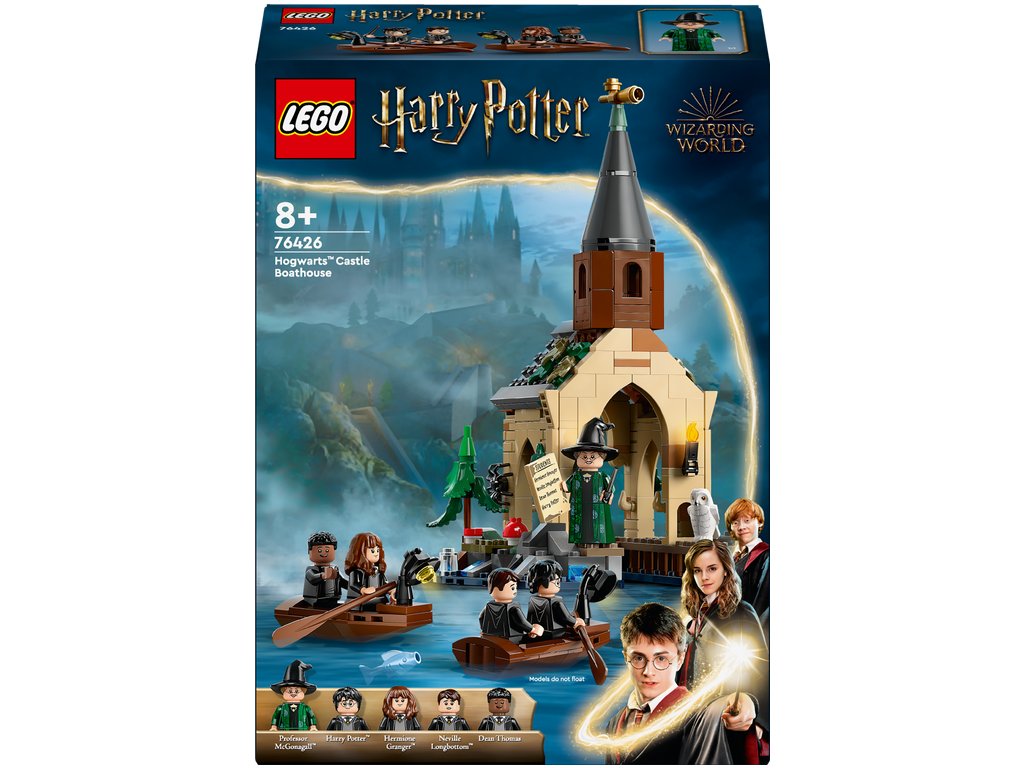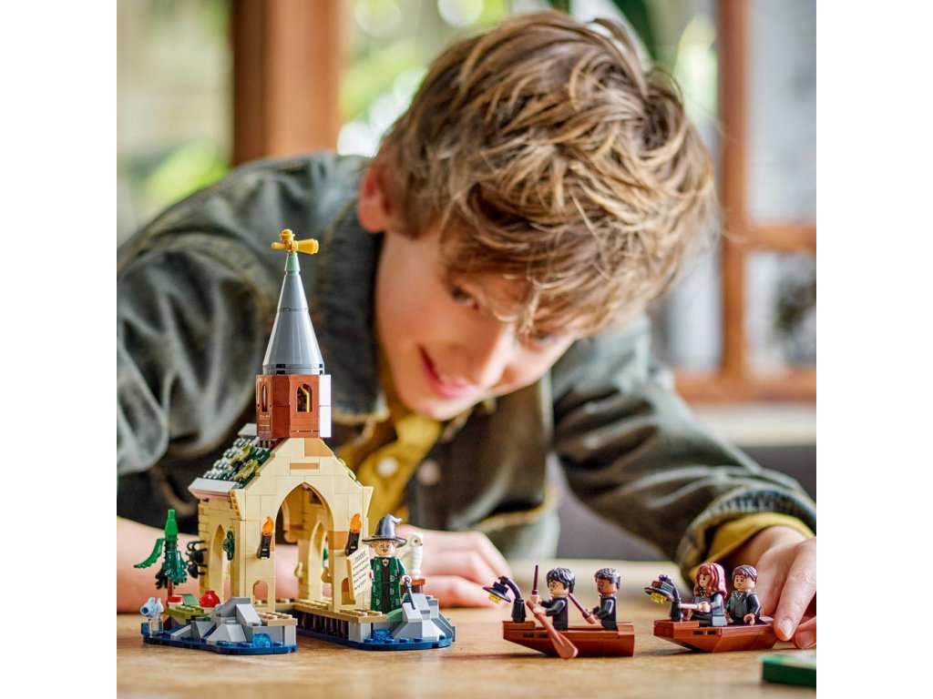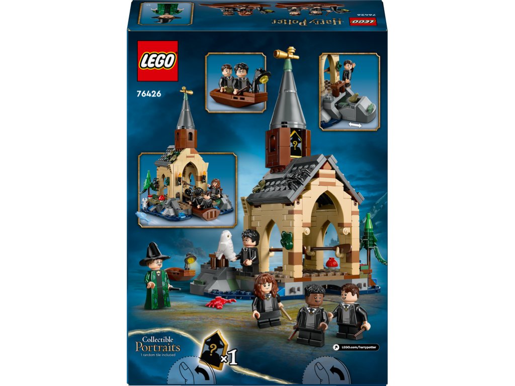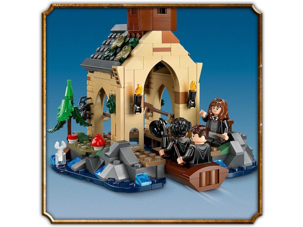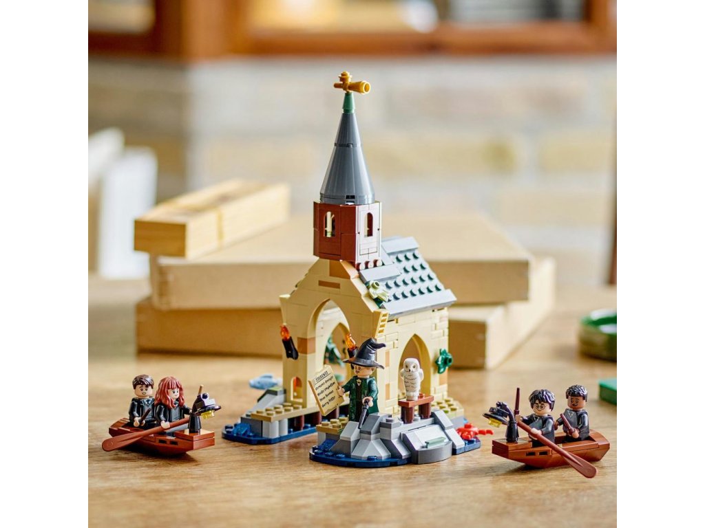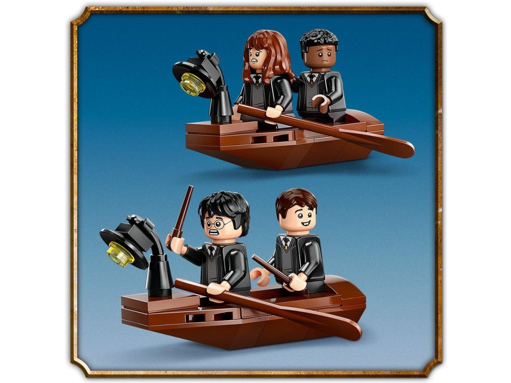 Táto fantasy stavebnica obsahuje 2 zostaviteľné člny s miestom pre 2 minifigúrky a lodenicu s priestorom na zakotvenie člna, úkryt pre ropuchu Gertrúdu, ktorá patrí Nevillovi Longbottomovi a jeden zo 14 vystavených zberateľských portrétov z Rokfortu.