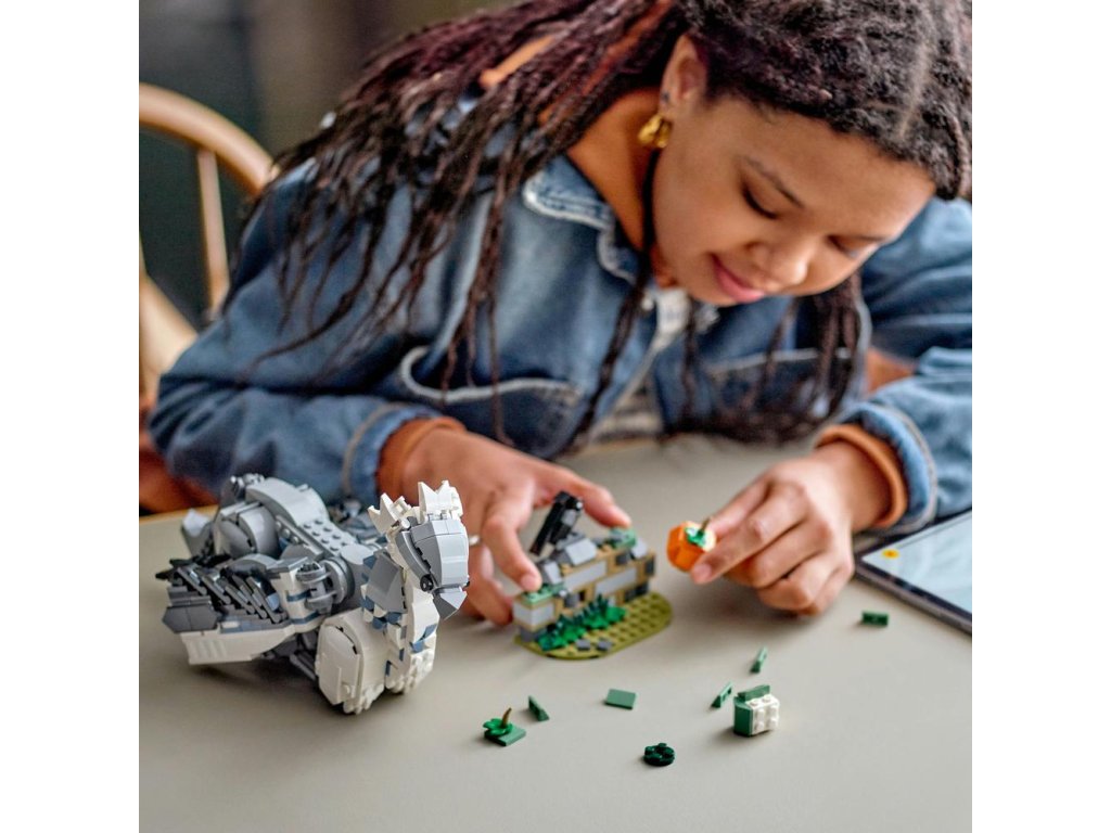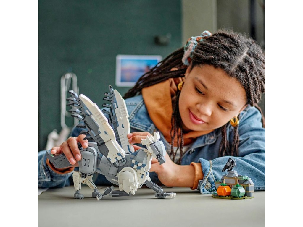 Dovoľte deťom znovu prežiť očarujúce dobrodružstvá s Harrym Potterom™ a vytvoriť si hravý výstavný kúsok s týmto hračkárskym Hrdozobcom (76427), doteraz najväčším modelom milovaného hipogrifa z kociek LEGO®. Táto stavebnica bude zábavným darčekom pre chlapcov, dievčatá a všetkých fanúšikov od 9 rokov a obsahuje polohovateľnú figúrku LEGO čarovného tvora, ako aj malú zostaviteľnú časť Hagridovho dvora s 2 tekvicami a figúrkou vtáčika na tvorivé príbehy či vystavenie. Nakloňte hlavu Hrdozobca, roztvorte mu krídla do lietajúcich póz a nastavte mu nohy na chôdzu, sedenie či do ikonického úklonu.