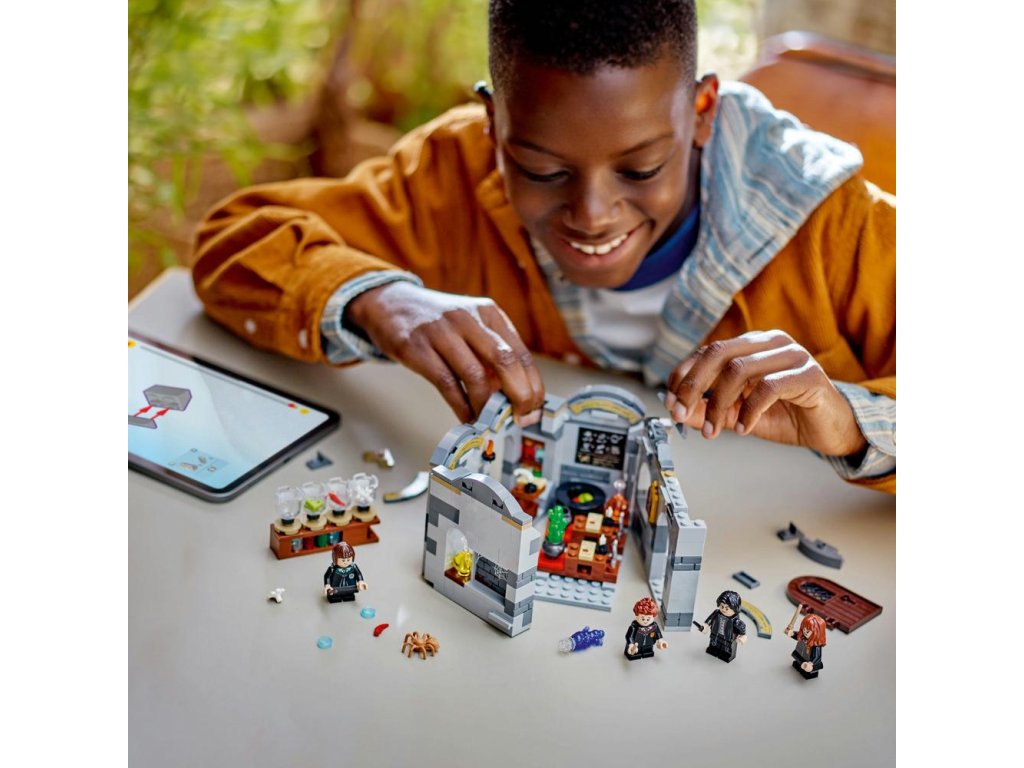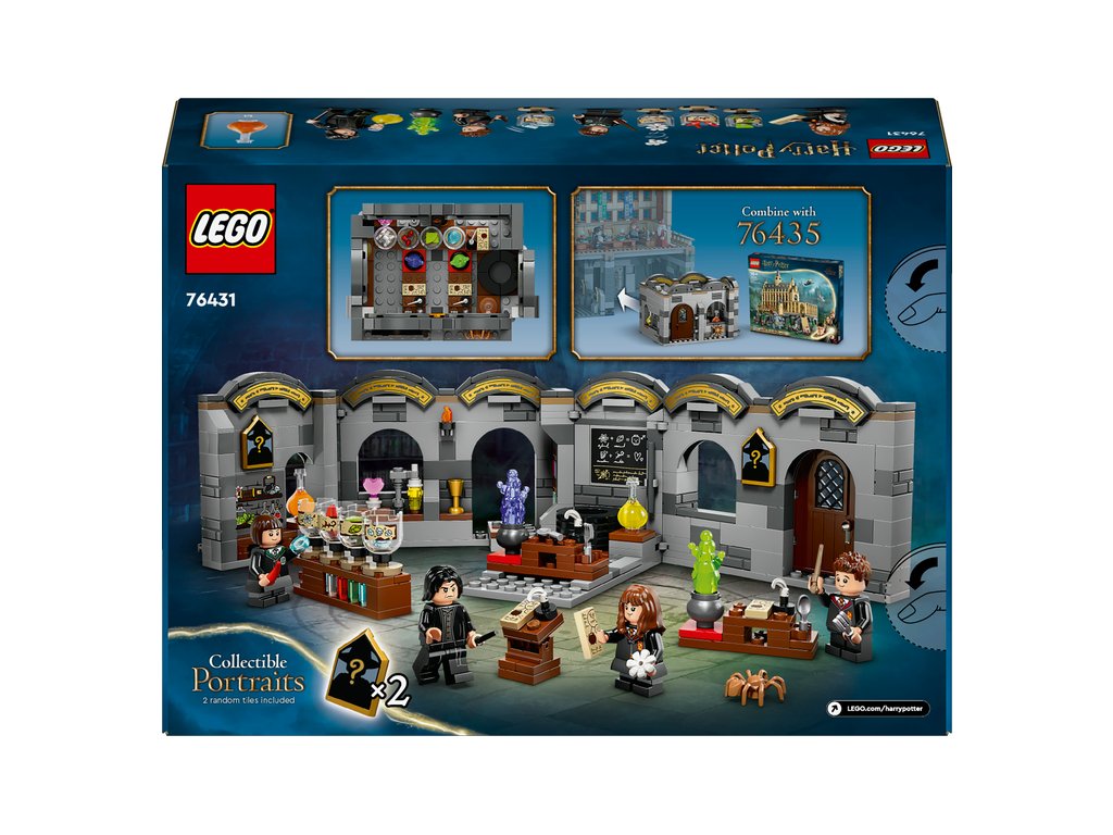 Dovoľte svojej malej čarodejnici, čarodejníkovi alebo muklovi™ zapojiť sa do Hodiny elixírov v Rokforte™ s touto zberateľskou hračkou LEGO® Harry Potter™ (76431) pre deti od 8 rokov. Harry Potter model obsahuje zostaviteľnú učebňu, ktorú môžete otvoriť a jednoducho vojsť dnu. Trieda je plná autentických detailov vrátane tabule s popisom tvorby elixírov, fľaštičiek s prvkami elixírov na miešanie v kotli a ďalšími doplnkami, ktoré rozprúdia tvorivú hru. V triede nájdete aj 2 zo 14 zberateľských rokfortských portrétov, ako aj LEGO minifigúrky profesora Severusa Snapea a študentov vrátane Hermiony Grangerovej™, Pansy Parkinsonovej a Seamusa Finnigana, s ktorými sa môžu zahrať na príbehy z Harryho Pottera.