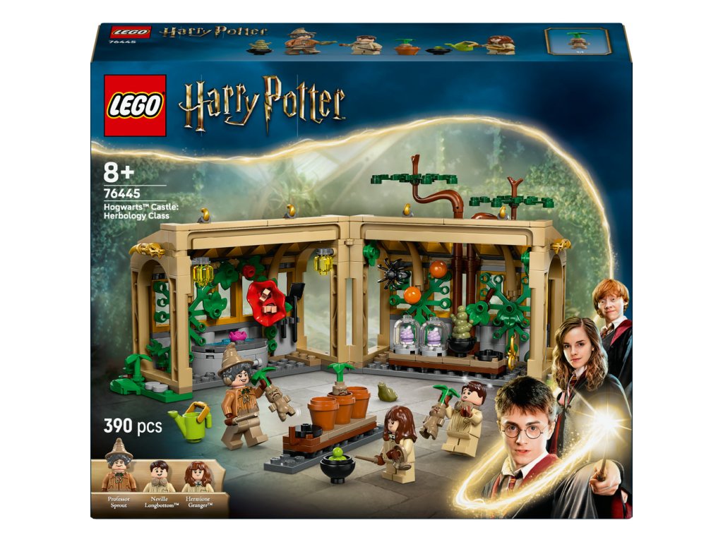 Stavebnica obsahuje 3 minifigúrky LEGO Harry Potter – Nevilla Longbottoma, Hermionu Grangerovú a profesorku Sproutovú – a figúrku ropuchy Trevora, s ktorými si môžete zinscenovať nezabudnuteľné momenty a vymýšľať očarujúce nové príbehy.