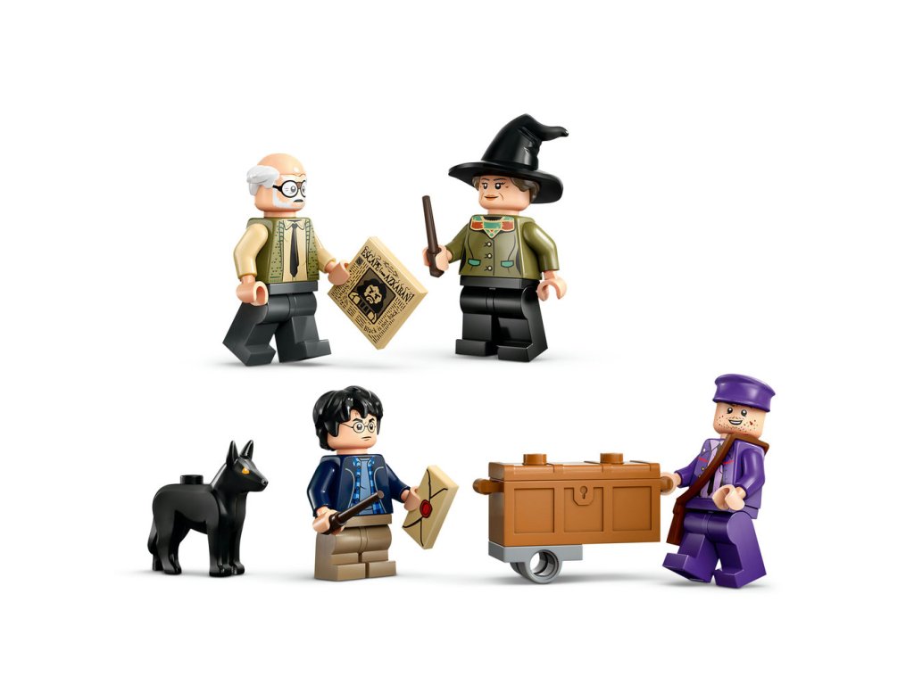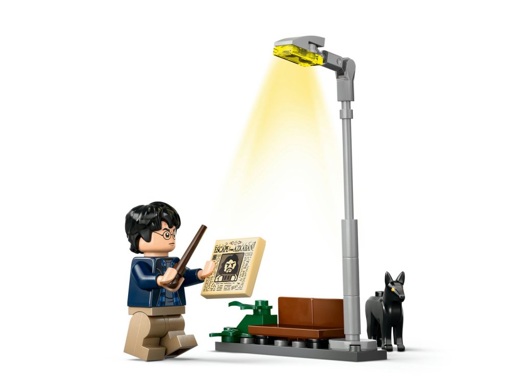 - Hravé detaily – Táto čarovná stavebnica obsahuje aj zostaviteľný lampový stĺp, lavičku, Harryho kufor s galeónovou mincou a list z Rokfortu, ako aj prvok novín Denný prorok