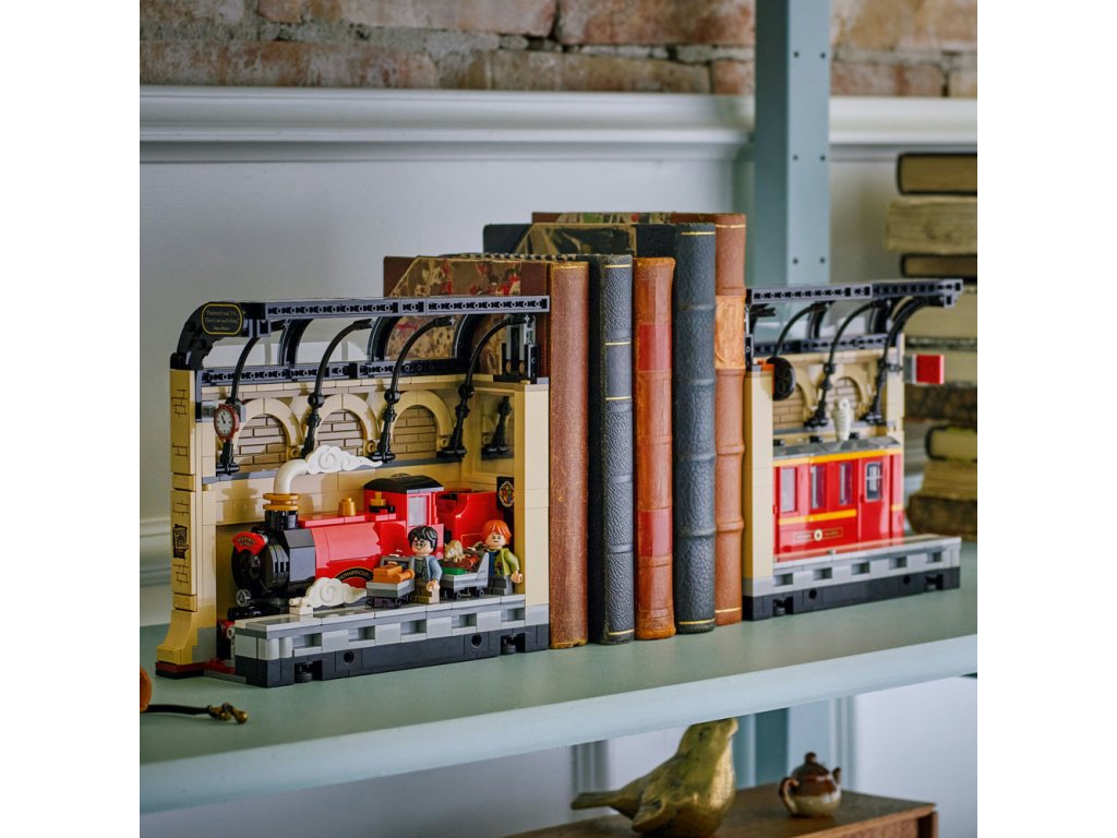 Vneste do detských poličiek kúsok kúzla s vôbec prvou Knižnou zarážkou LEGO® Harry Potter™ (76450), ktorá obsahuje zostaviteľnú časť Rokfortského expresu. Zarážka je kreatívny spôsob, ako si vytvoriť magickú poličku s knihami. Táto čarovná hračka vezme deti na ikonickú scénu na nástupišti 9¾ na stanici King's Cross s minifigúrkami Harryho Pottera a Rona Weasleyho a figúrkami LEGO ich domácich miláčikov Hedvigy a Prašivca. Vláčik obsahuje prepracovanú lokomotívu a vozeň s bočnými výrezmi pre minifigúrky a na jednom konci má zrkadlá, ktoré vytvárajú ilúziu dlhšieho vlaku.