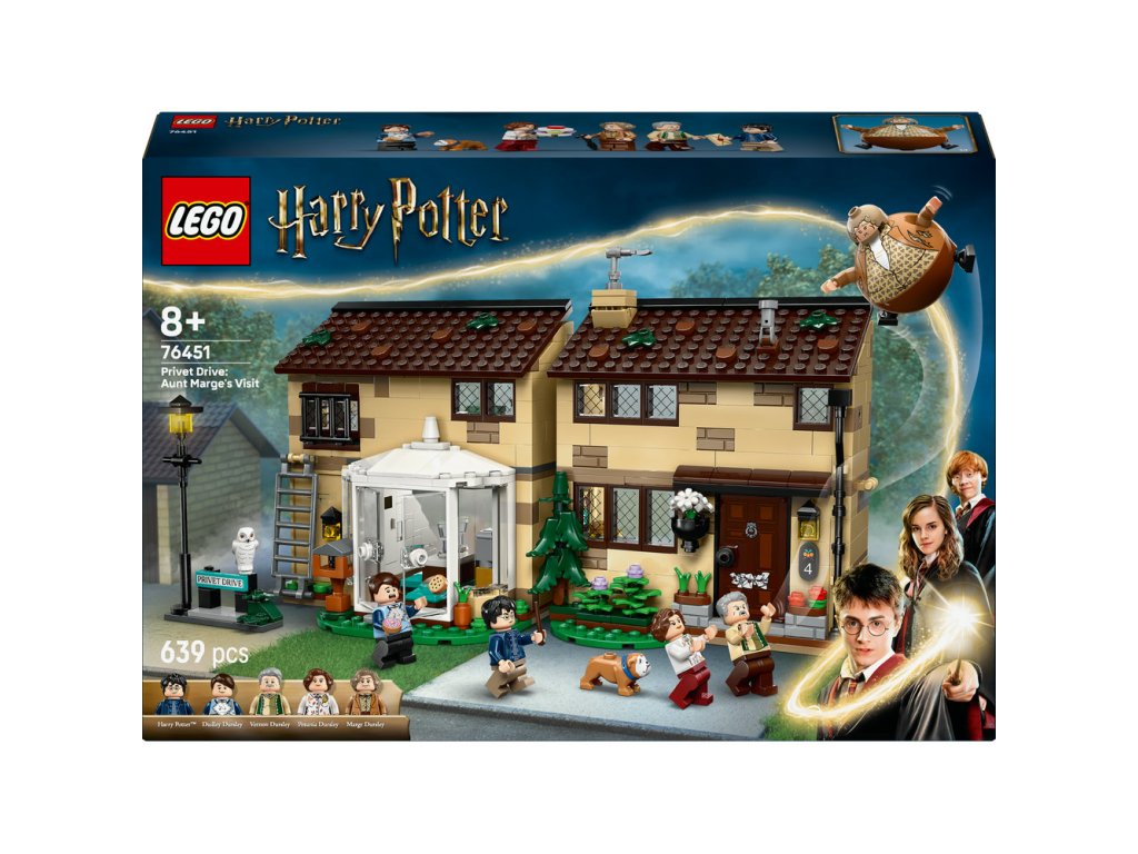 Táto fantasy dobrodružná stavebnica bude čarovným darčekom na Vianoce či narodeniny pre chlapcov, dievčatá a všetkých fanúšikov Harryho Pottera od 8 rokov. Model obsahuje 5 minifigúrok LEGO Harry Potter afigúrku psa Rozparovača, ako aj nafúknutú figúrku tety Marge na zinscenovanie vtipnej scény, v ktorej Harry vyčaruje kúzlo, ktorou ju vystrelí do vzduchu ako balón. Súčasťou stavebnice je aj bočný model s nápisom „Privet Drive“ („Privátna cesta“) a pou ličná lampa.