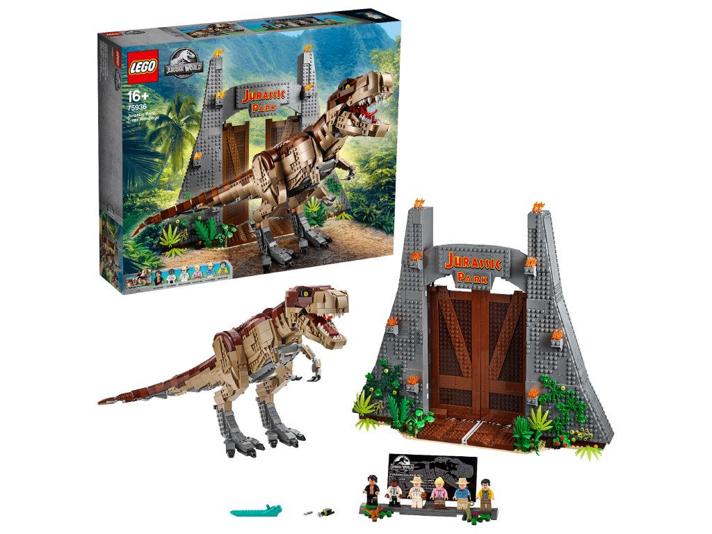 Uži si zážitok zo stavania pre pokročilých a oživ si klasické filmové momenty so stavebnicou LEGO® Jurassic World 75936 Jurský Park: Besnenie T. rexa. Táto zberateľská stavebnica obsahuje 3120 stavebných kociek. Pozostáva z originálnej ikonickej brány do Jurského parku a obrovského, plne polohovateľného dinosaura T. rexa zostaviteľného z kociek, ktorý je ideálnou hračkou na vystavenie. Brána, ktorá sa aktivuje spúšťou, je obkolesená stenou, v ktorej je obsiahnutých 7 detailne prepracovaných scén zostavených z kociek inšpirovaných filmom. Sú to napríklad jedáleň Johna Hammonda, riadiaca miestnosť Raya Arnolda či bunker pre Iana Malcolma. Hračka, ktorú musia mať všetci fanúšikovia edície Jurassic World, obsahuje 6 minifigúrok a figúrku dinosaurieho mláďatka. Súčasťou je tiež stojan na vystavenie minifigúrok s doštičkou s informáciami o T. rexovi.