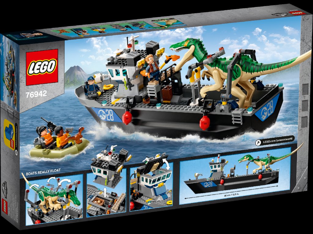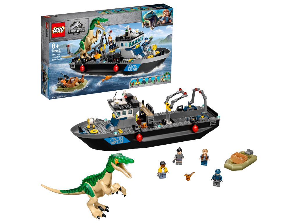 - S touto úžasnou stavebnicou z radu LEGO® Jurský svet (76942) si deti môžu zinscenovať napínavý útek baryonyxa z lode. Set obsahuje štýlovú loď z kociek, ktorá pláva na vode, a to aj ak na jej palube stojí dinosaurus!